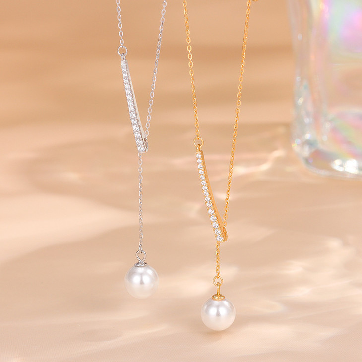 MONZECI KOIMS 轻奢系列 【第四款】Y形珍珠项链(两种颜色可选) 把 “显瘦” 刻进设计里的项链! Y 型链条拉长颈部线条,钻条闪耀 + 珍珠垂坠,时髦又藏小心机💡 单戴是个性 C 位,叠戴其他项链也不冲突 链条可调节 方便摘取,满足各种搭配需求~