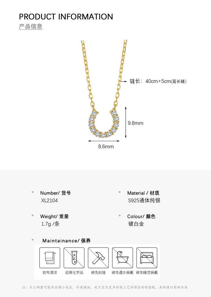 MONZECI KOIMS 轻奢系列 【第三款】U形马蹄项链 职场姐妹锁死这条! U 型满钻设计,简约到极致却自带贵气💎 链条细得像会 “隐身”,但钻的亮度绝了 灯光下直接闪耀全场✨