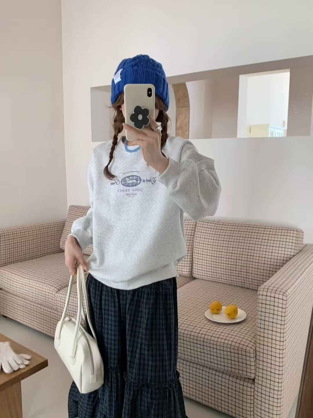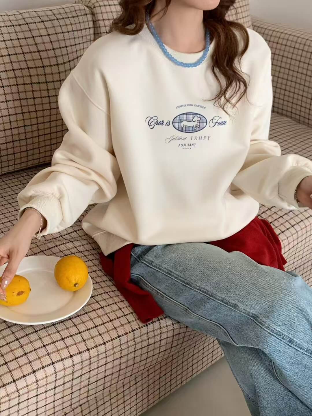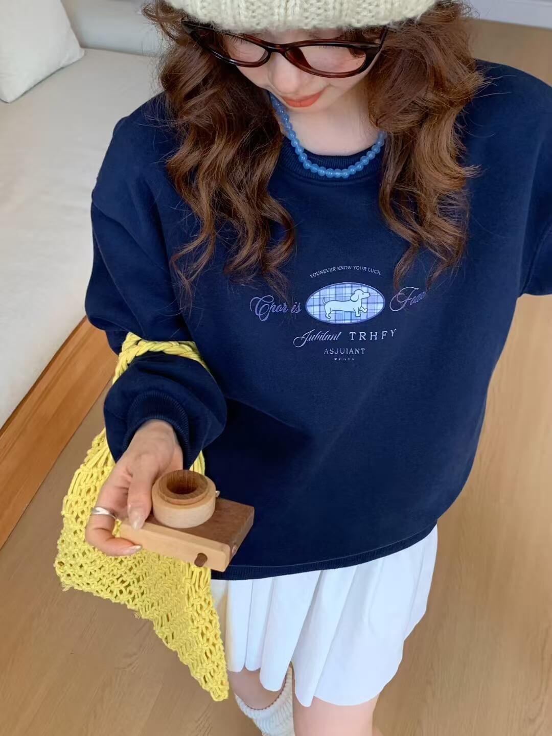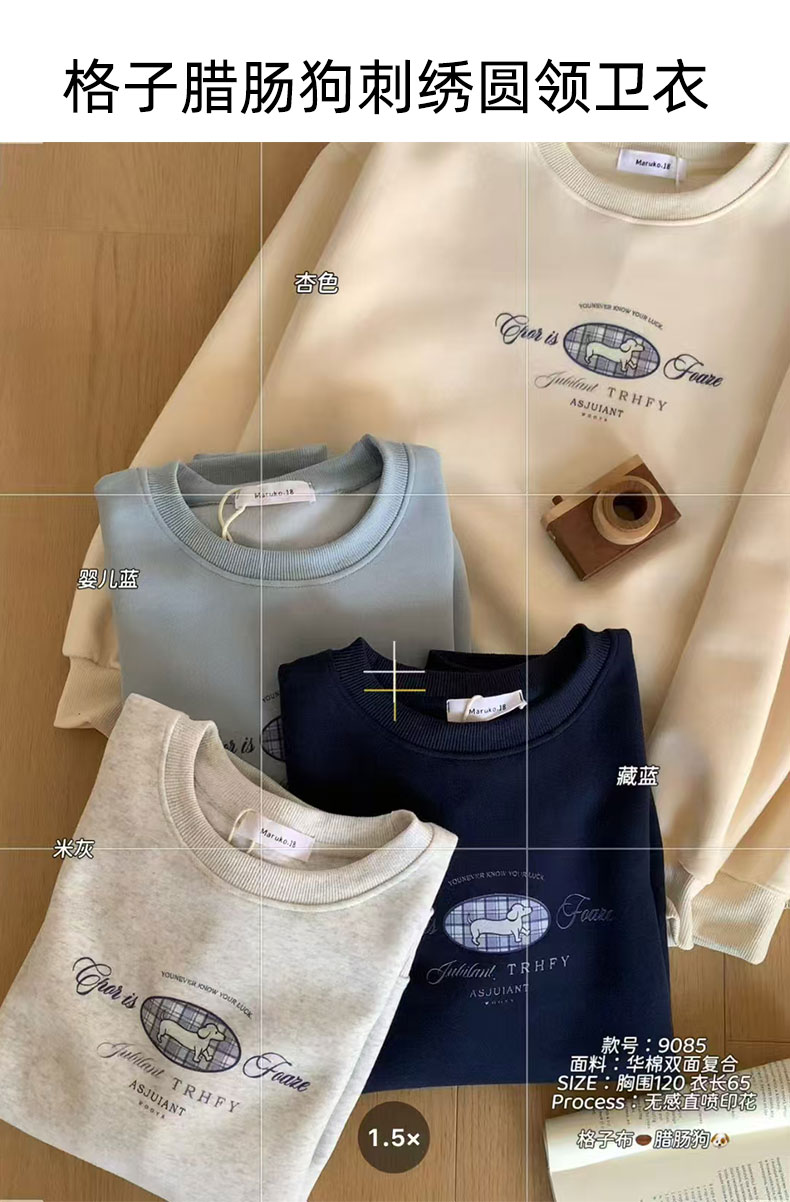GZ格子腊肠狗刺绣圆领卫衣女(LH)(LD)-166795587