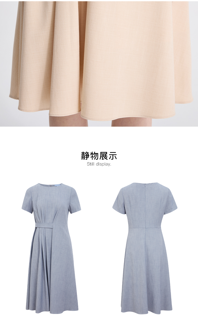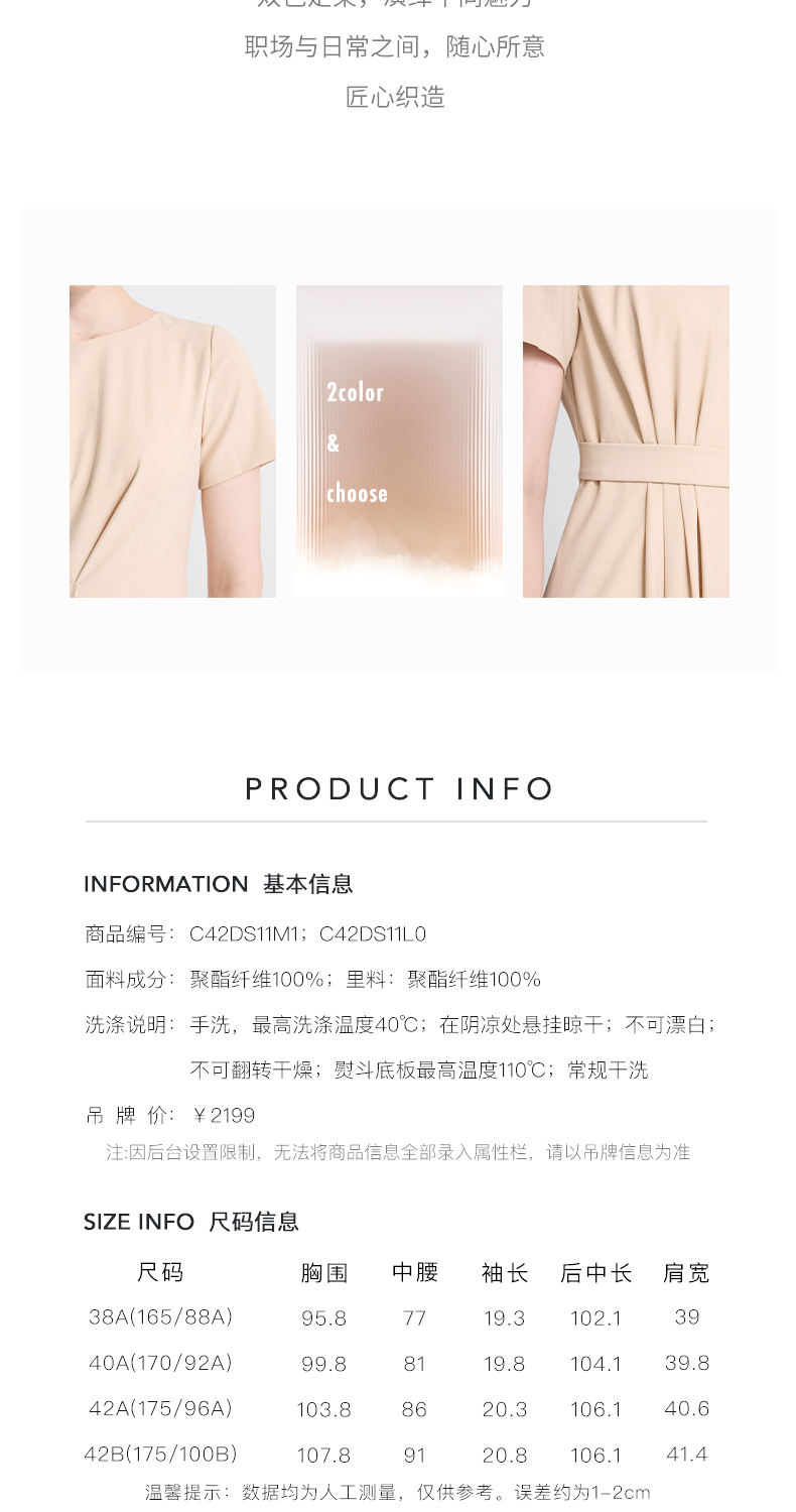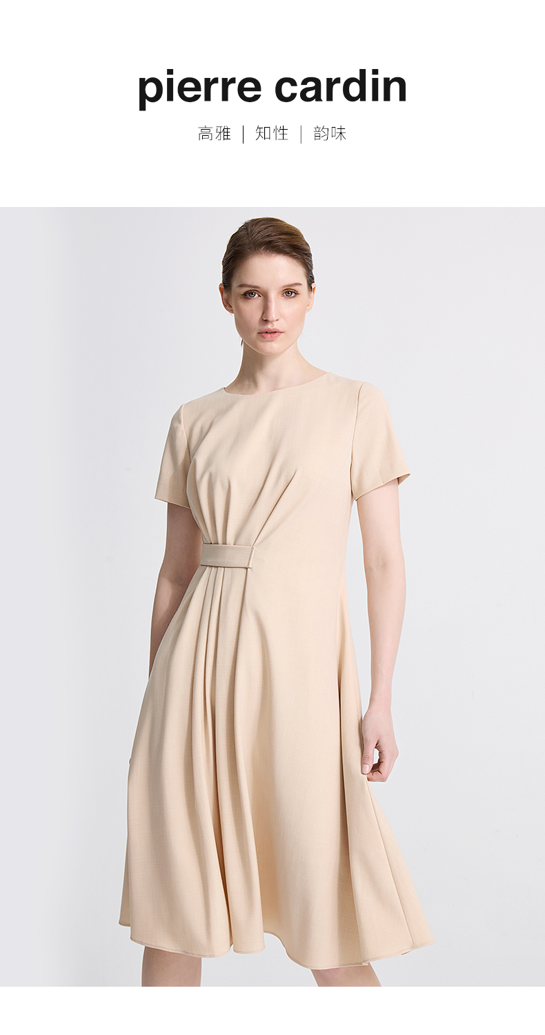 皮尔卡丹女装新款通勤时尚淑女修身双色夏季连衣裙C42DS11