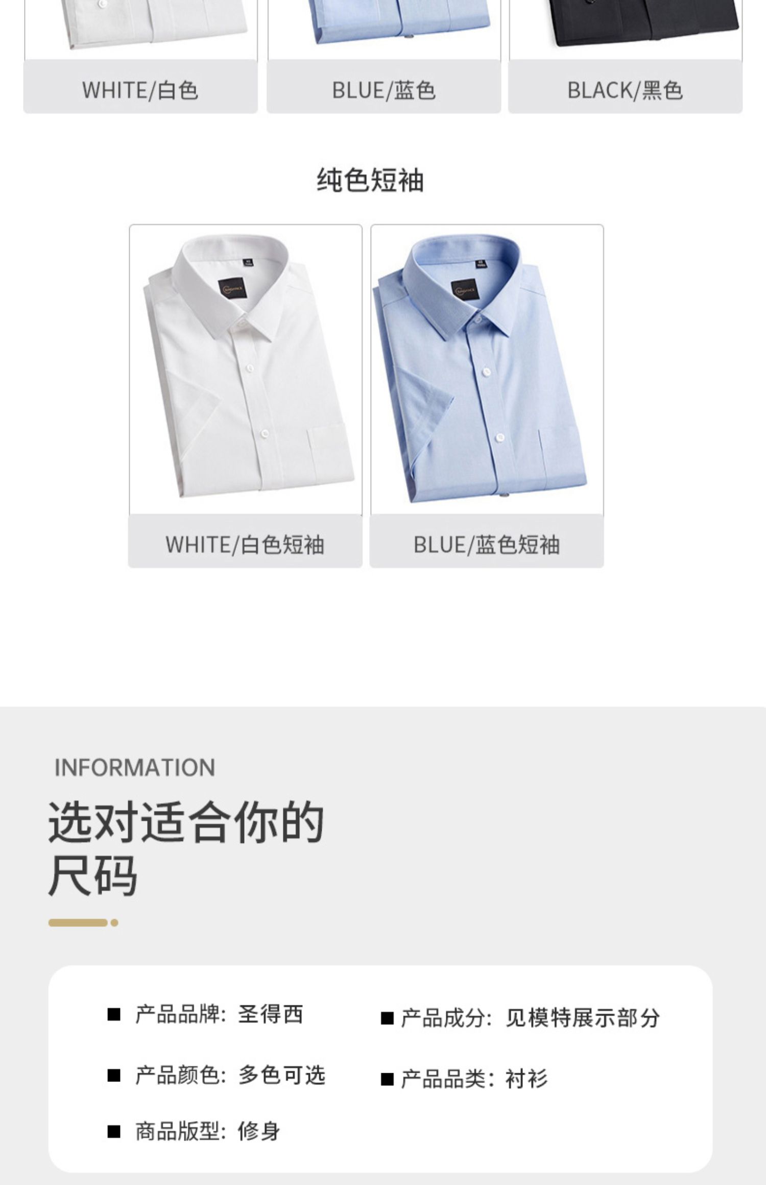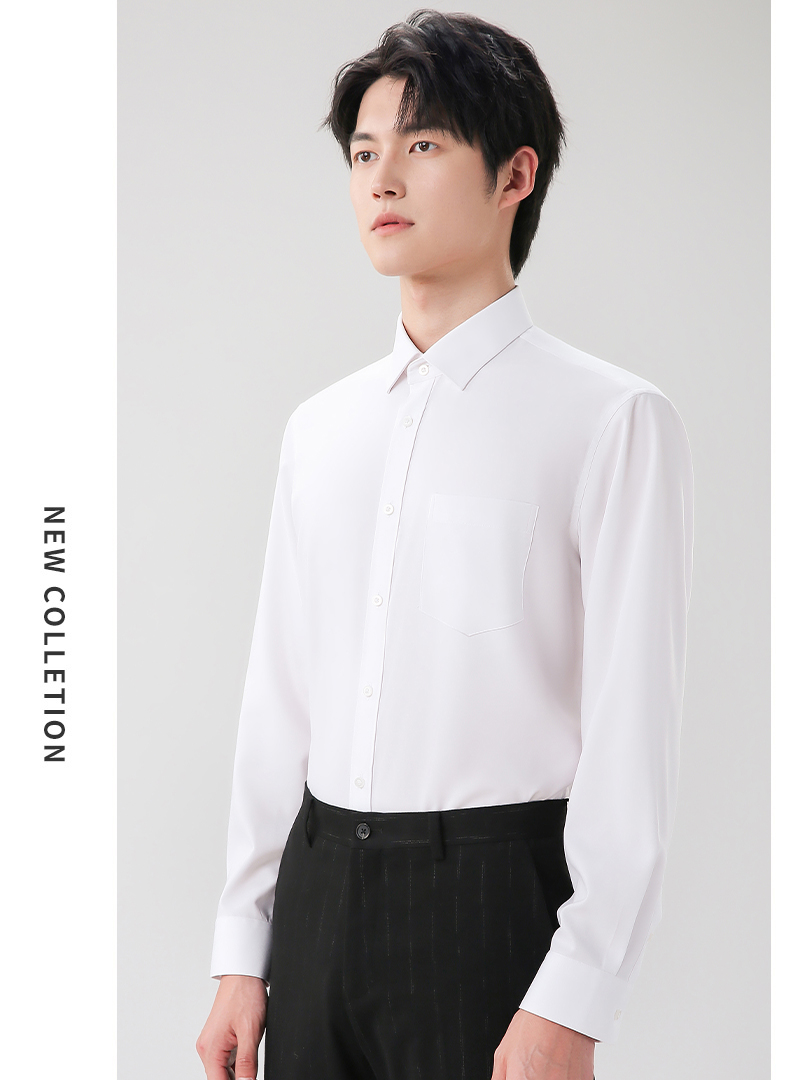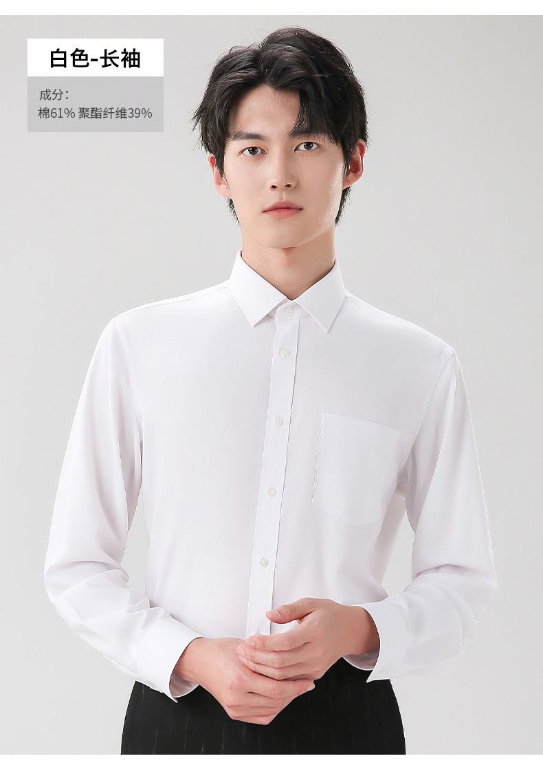 圣得西衬衫男长袖春季帅气修身商务正装纯色职业白衬衣男2112953801