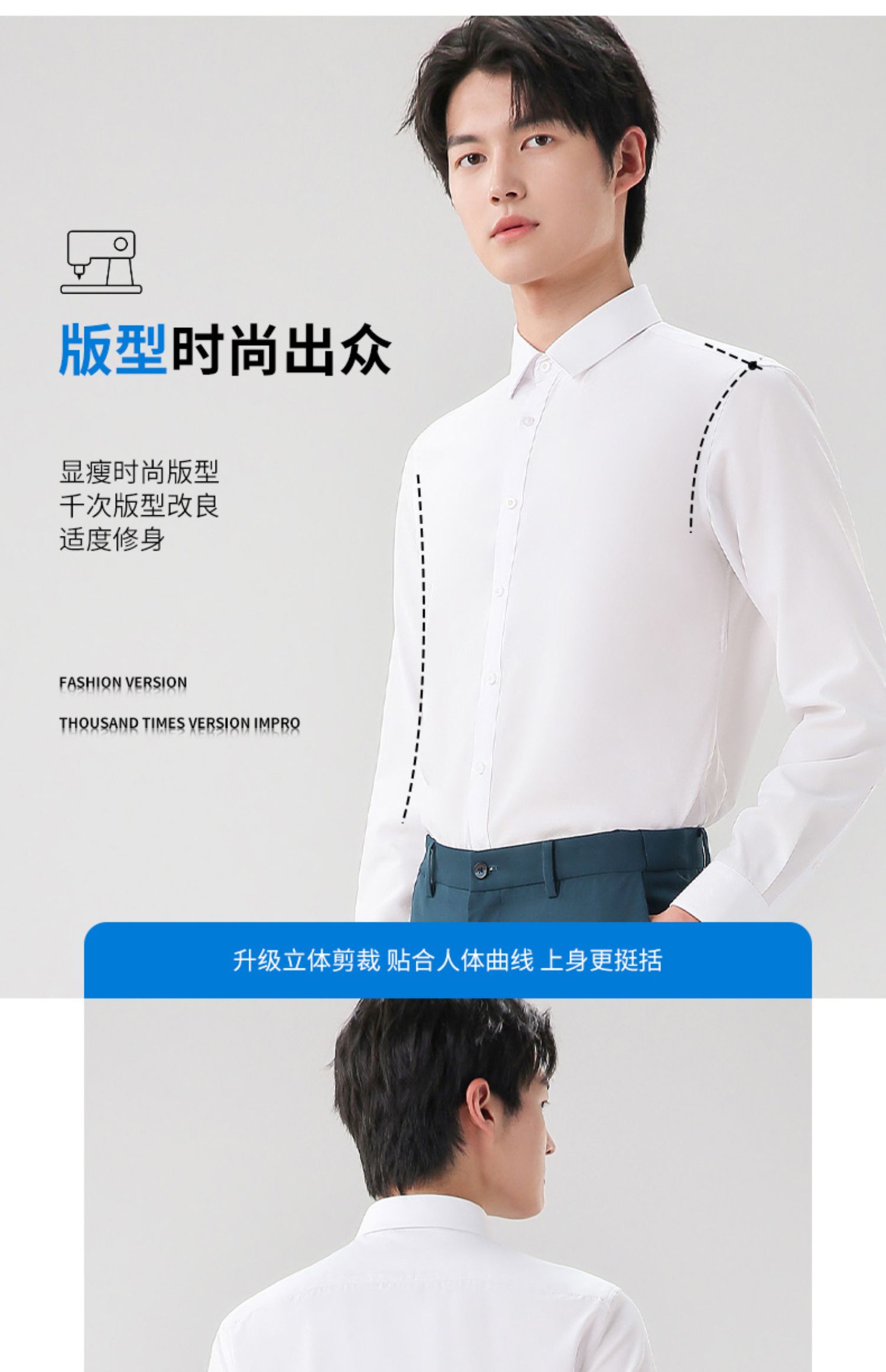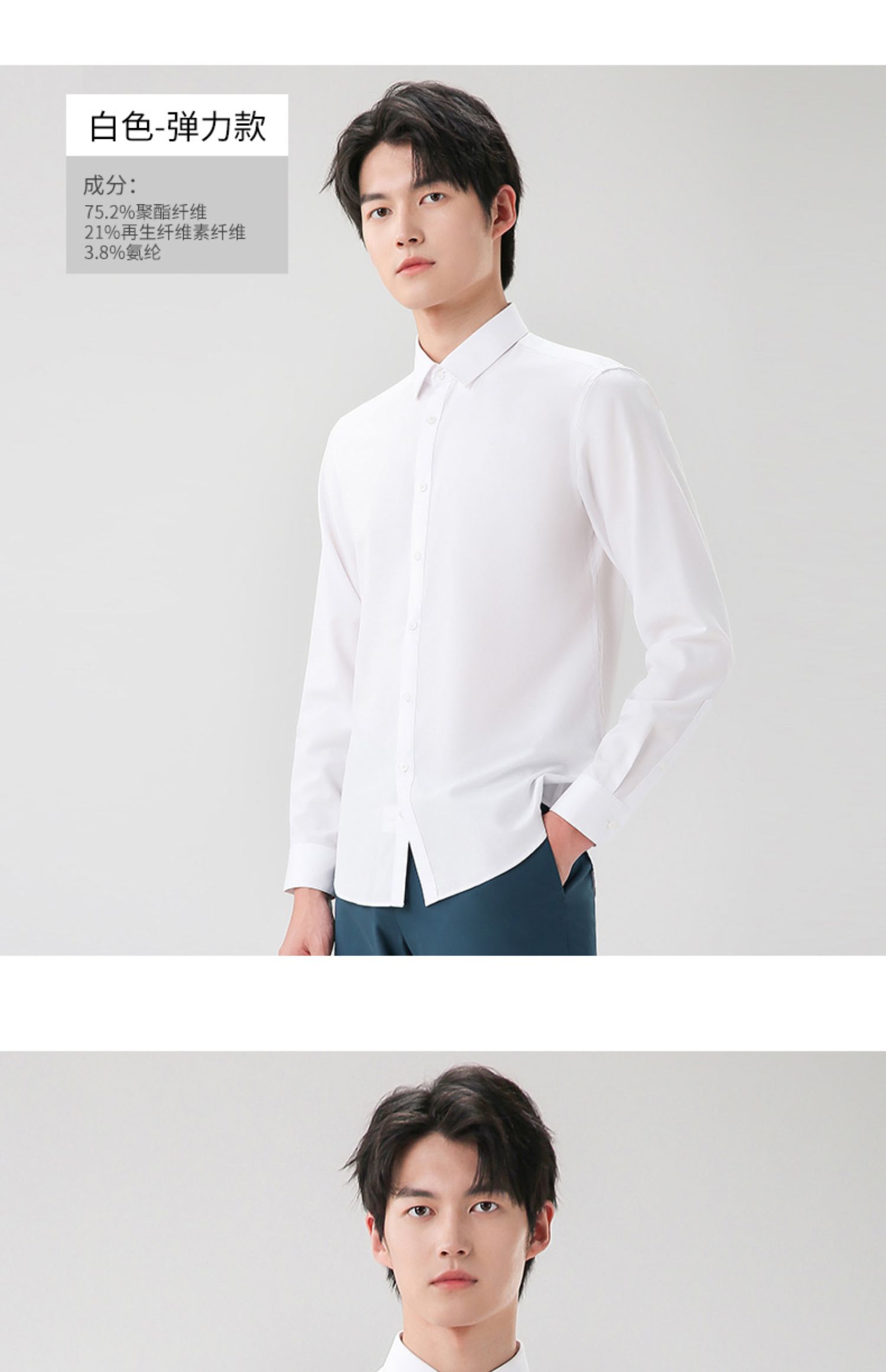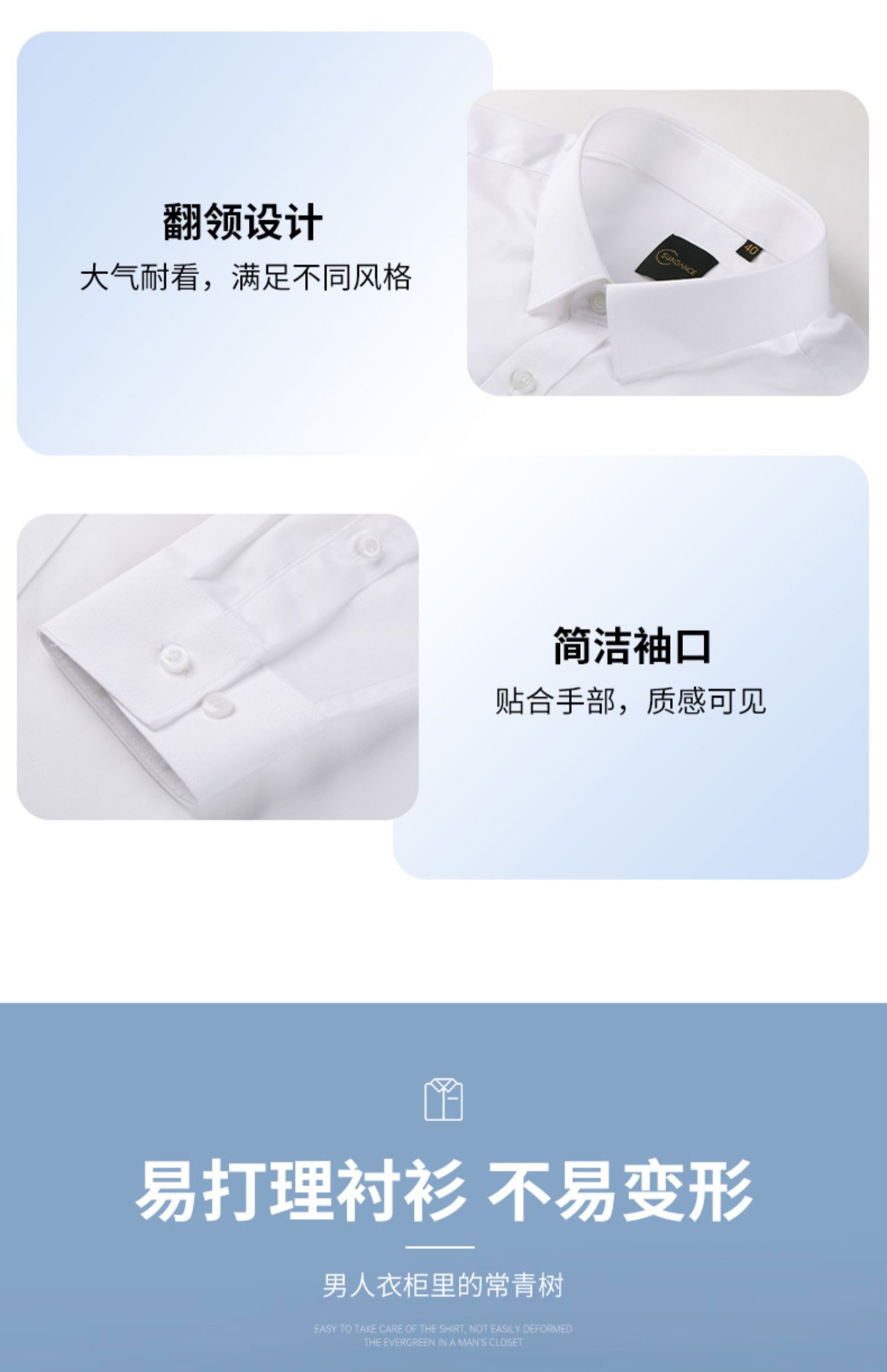 圣得西衬衫男长袖春季帅气修身商务正装纯色职业白衬衣男2112953801