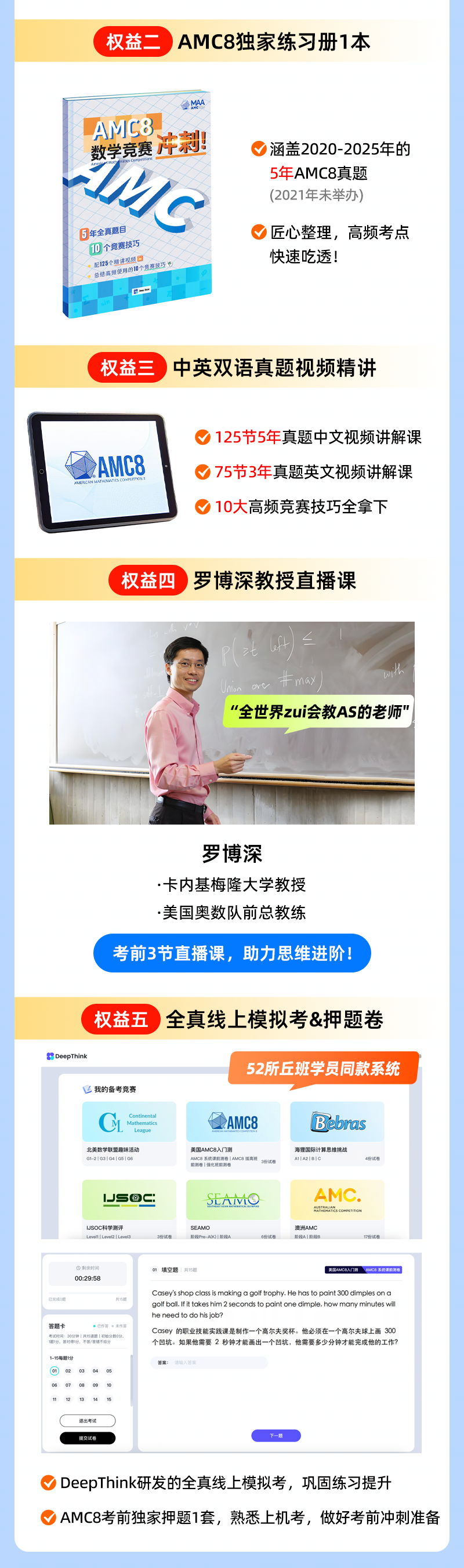 【鱼Sir】美国AMC8 赛考直通车 含真题册+考位+罗博士直播