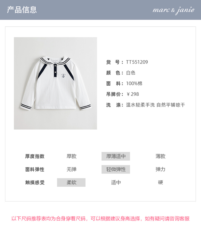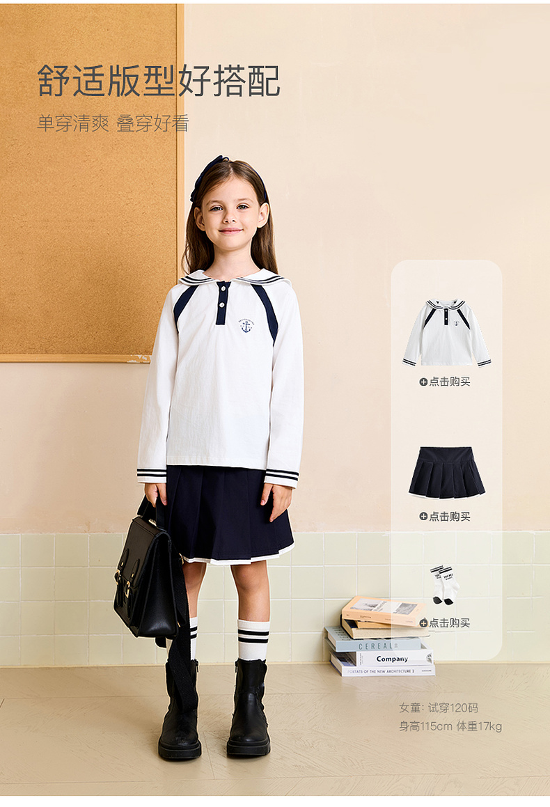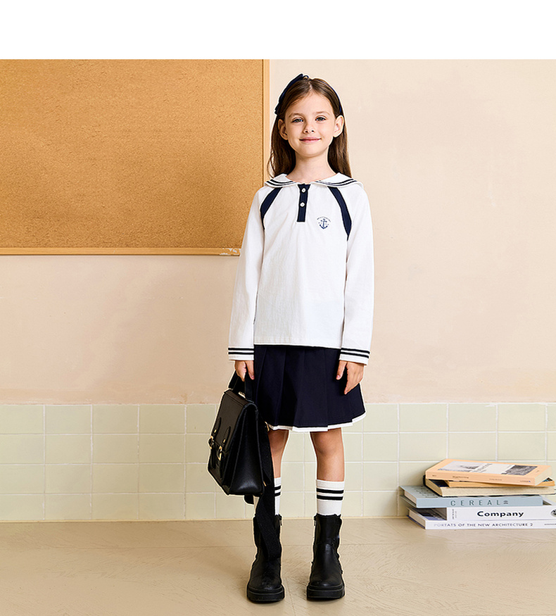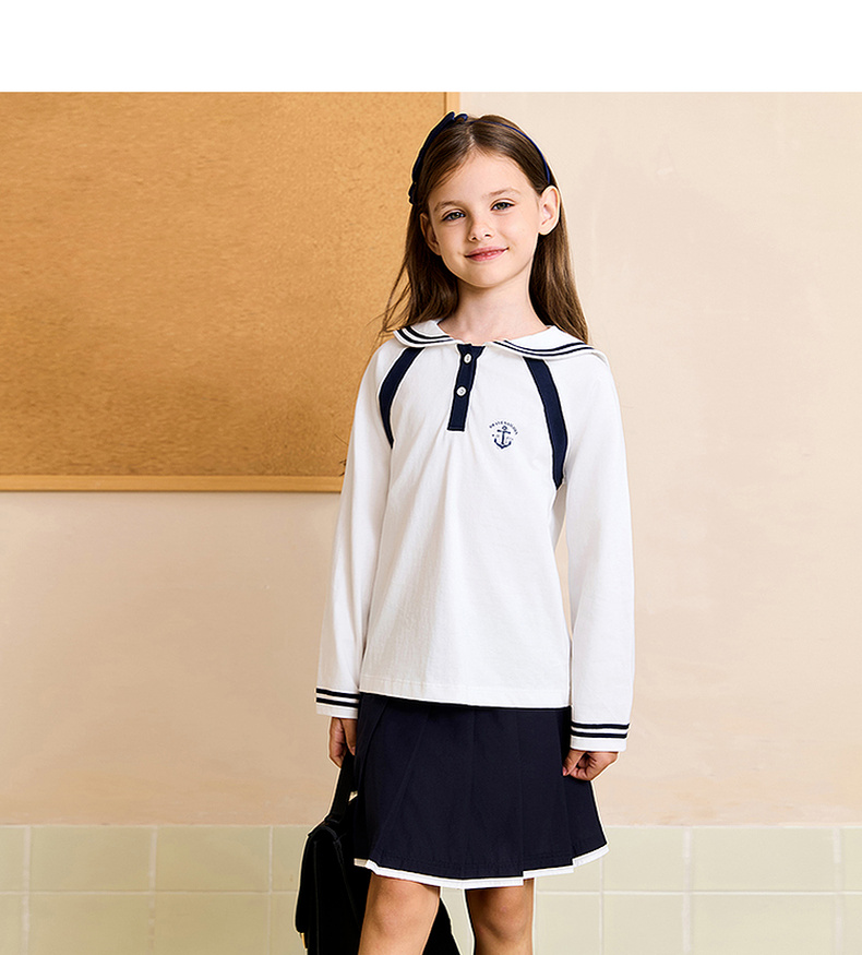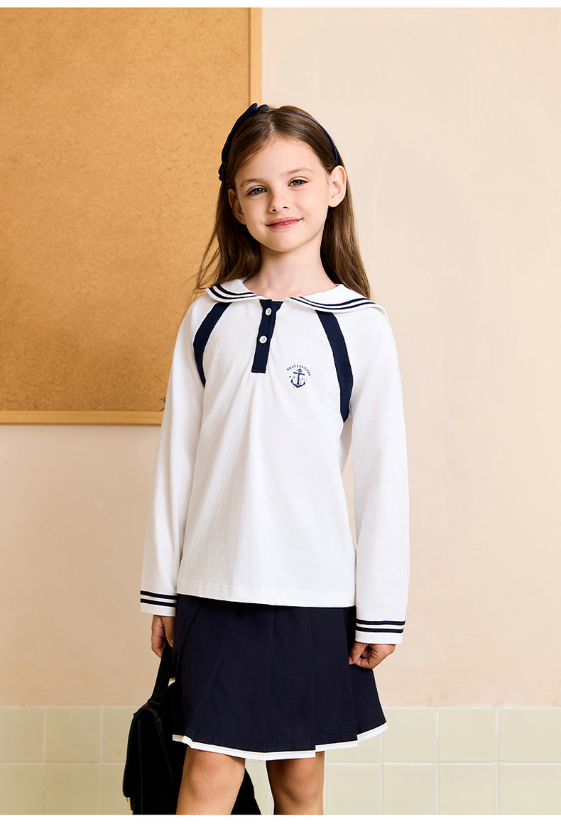 马克珍妮女童海军学院长袖T恤 儿童薄卫衣2025年秋装新款551209