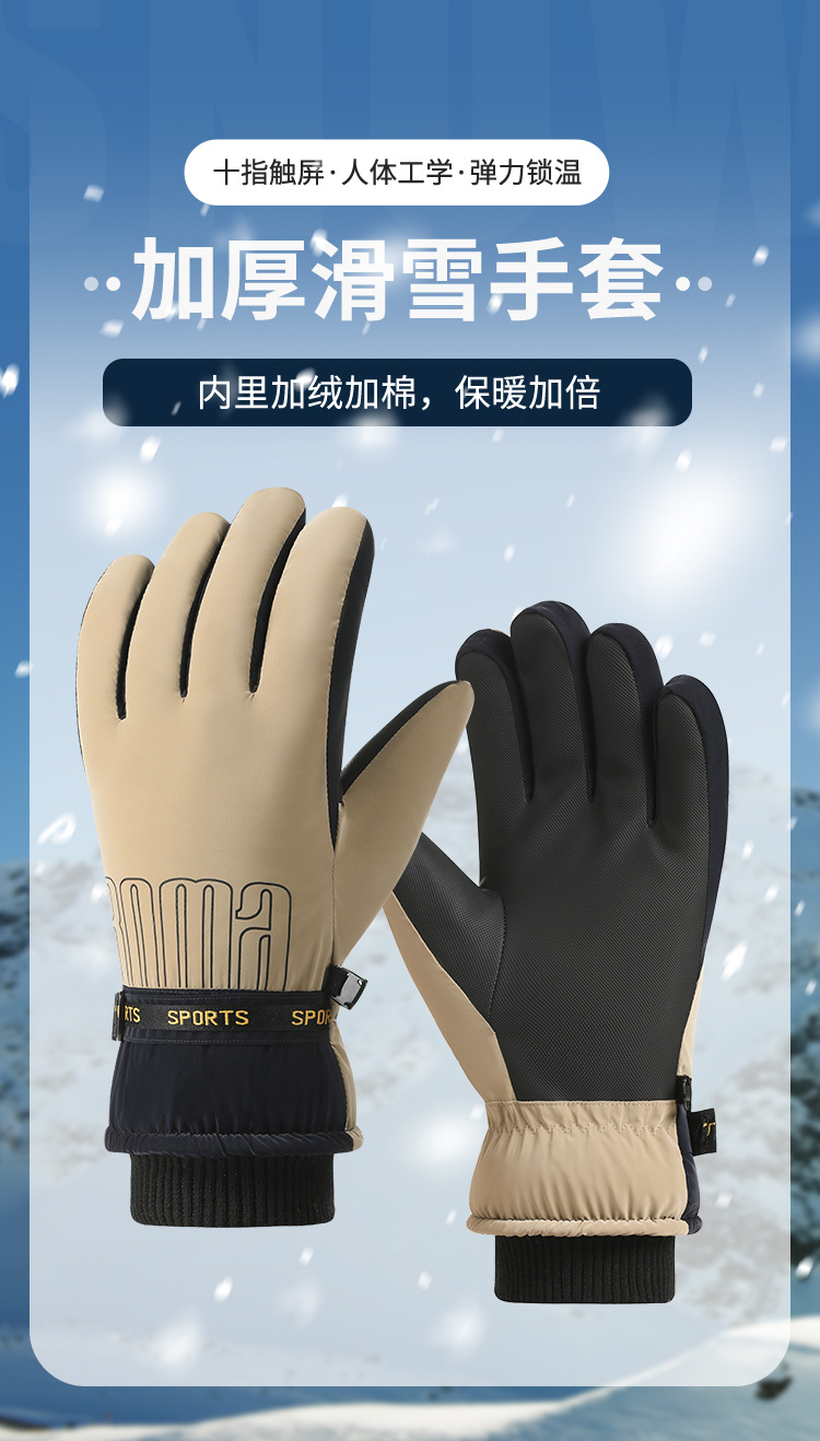 冬季加绒保暖滑雪手套男户外骑行摩托车防风防寒防滑触屏
