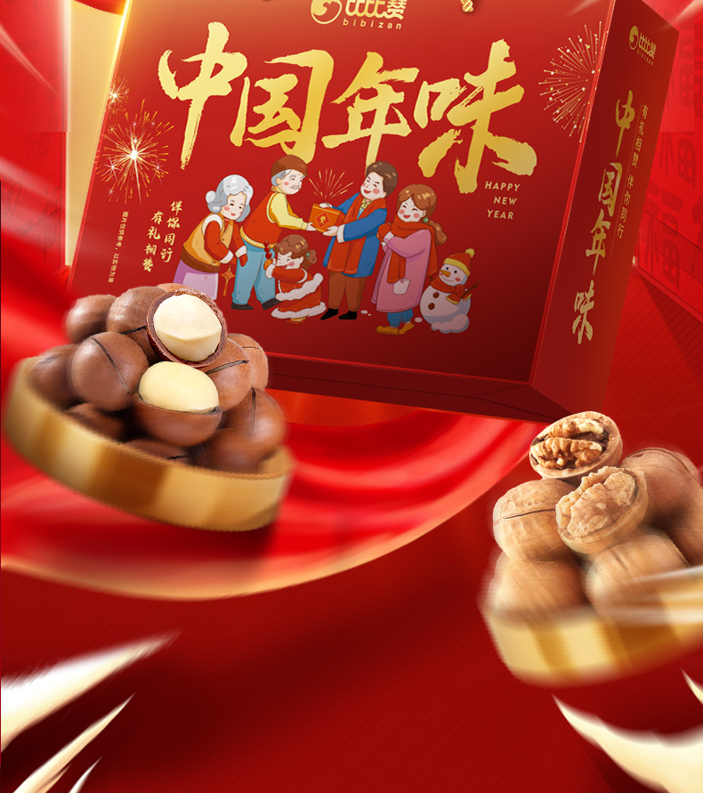 比比赞年货礼盒过年礼盒走亲戚夏威夷果新年货零食大礼包坚果礼盒