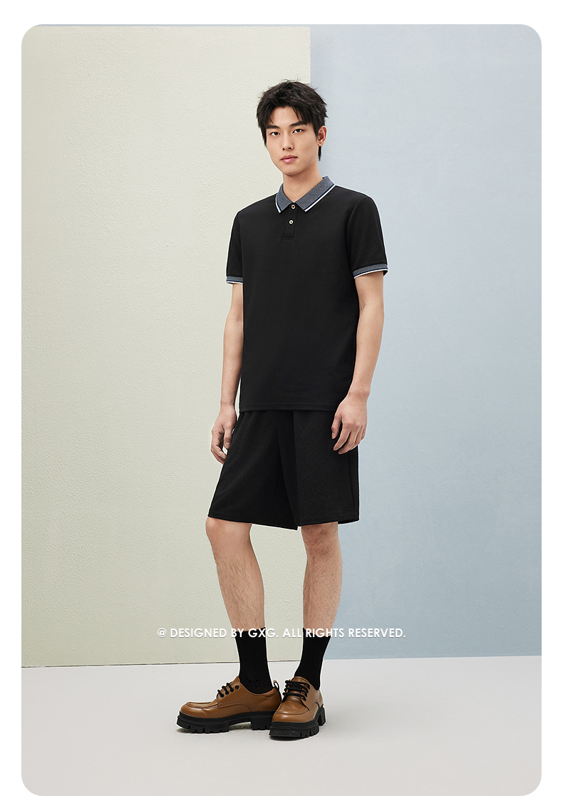 2025春夏热卖GXG男装休闲通勤双色男士翻领短袖Polo衫男*