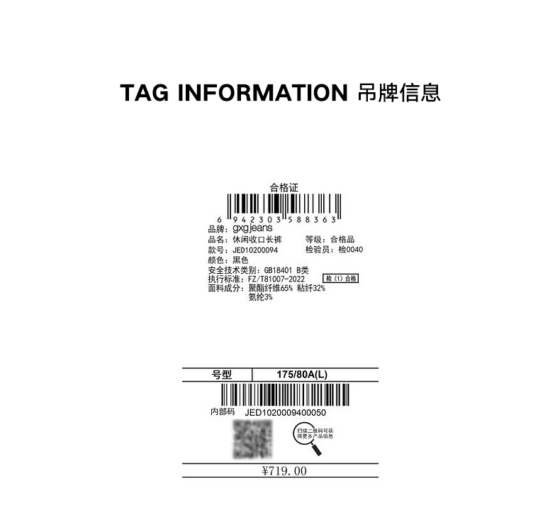 GXG男装 黑色束脚休闲裤宽松舒适长裤休闲裤男士 秋季热卖束脚裤 G24X023096