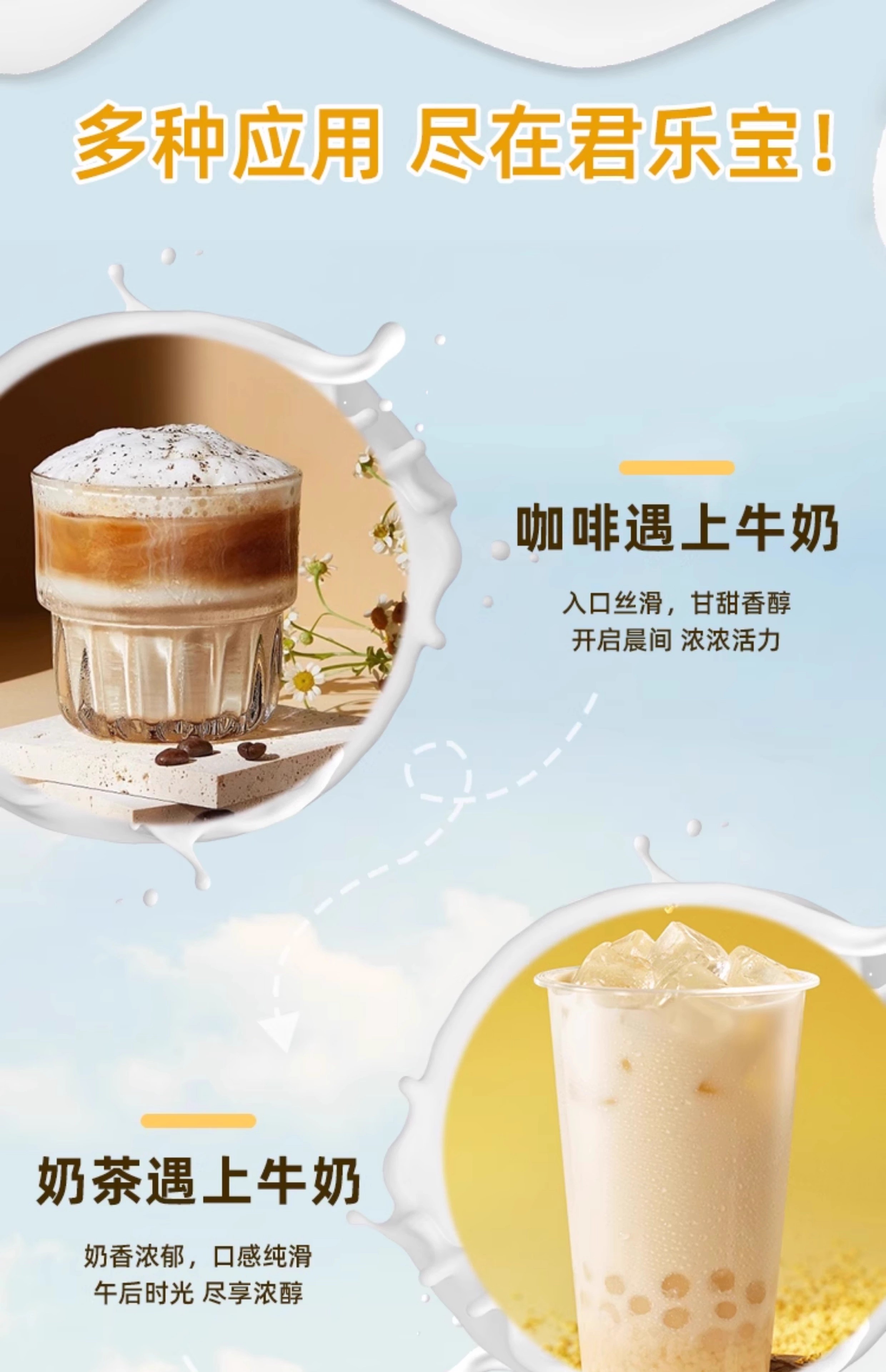 君乐宝全脂纯牛奶1L*12盒整箱奶茶店商用咖啡专用烘培原料