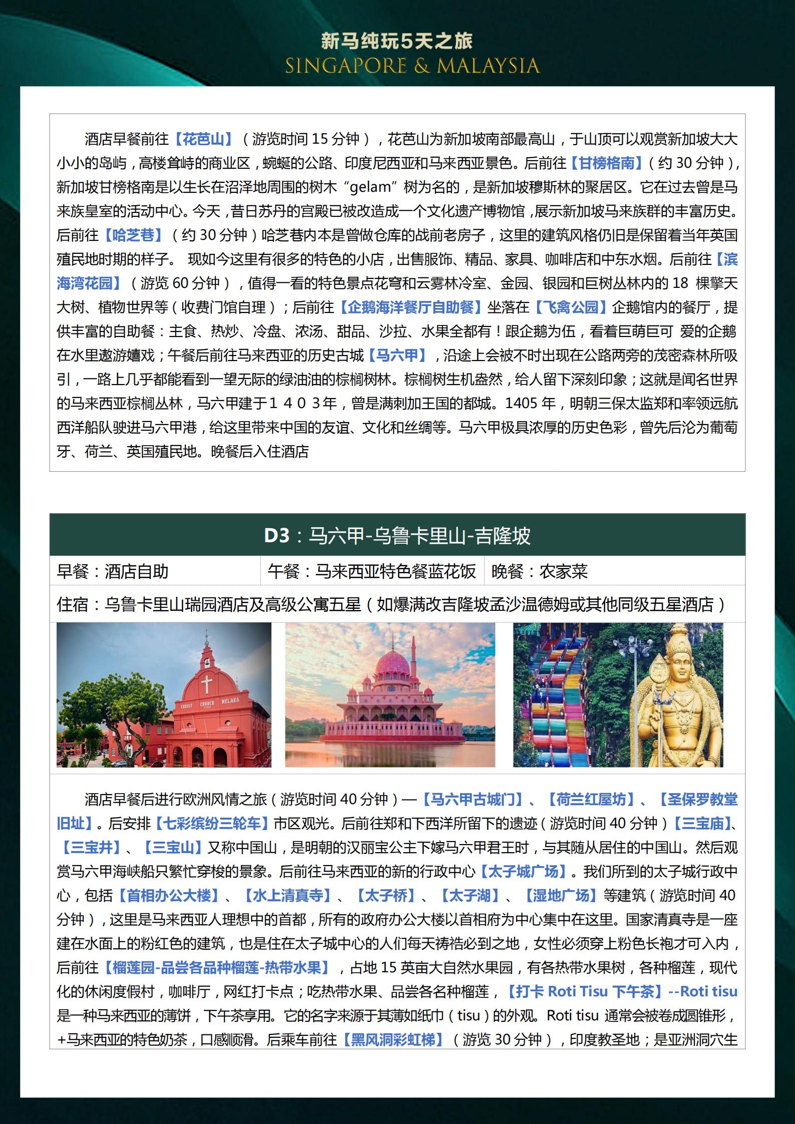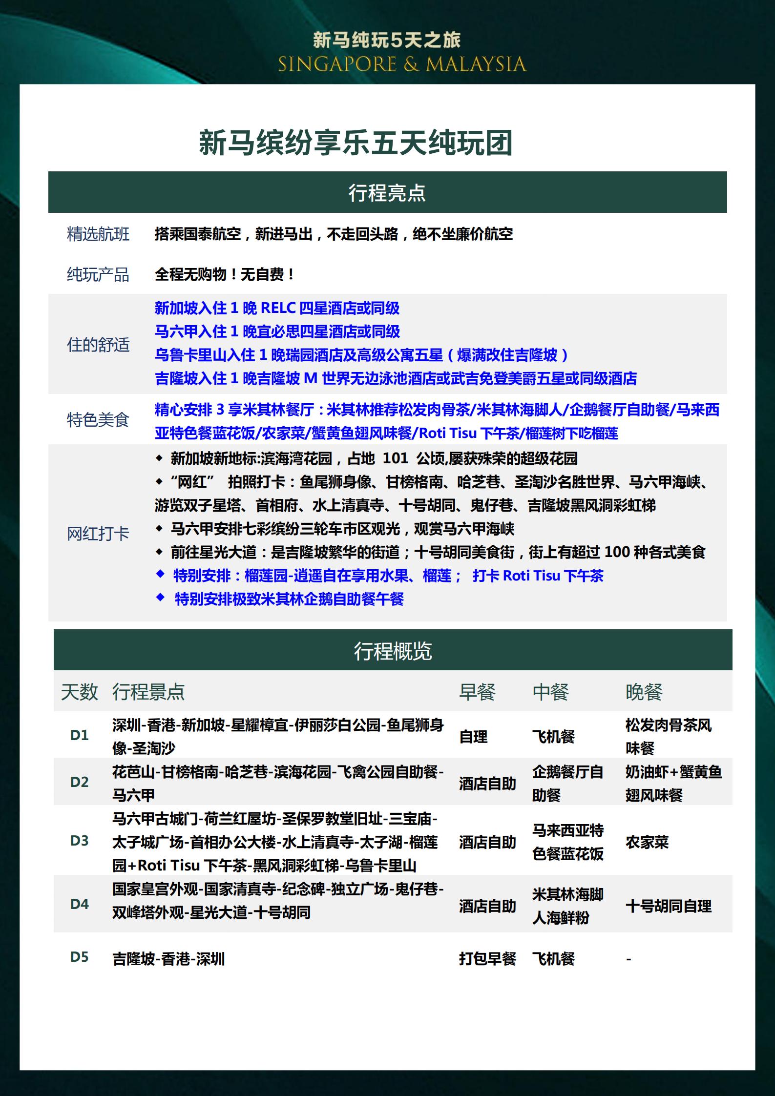 【五一】<新加坡+马来西亚5天纯玩团>飞禽公园自助餐、滨海湾花园、花芭山、伊丽莎白公园、马六甲欧洲风情之旅、榴莲园品尝榴莲、太子城广场、乌鲁卡里山、吉隆坡市区观光