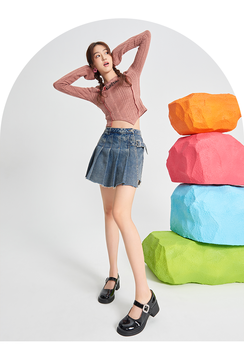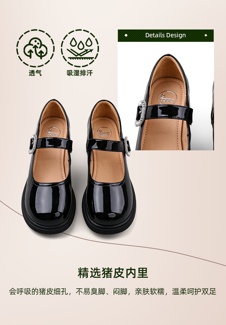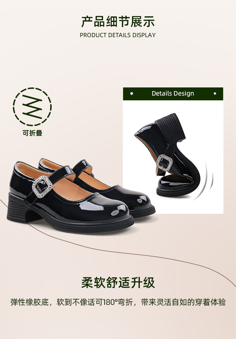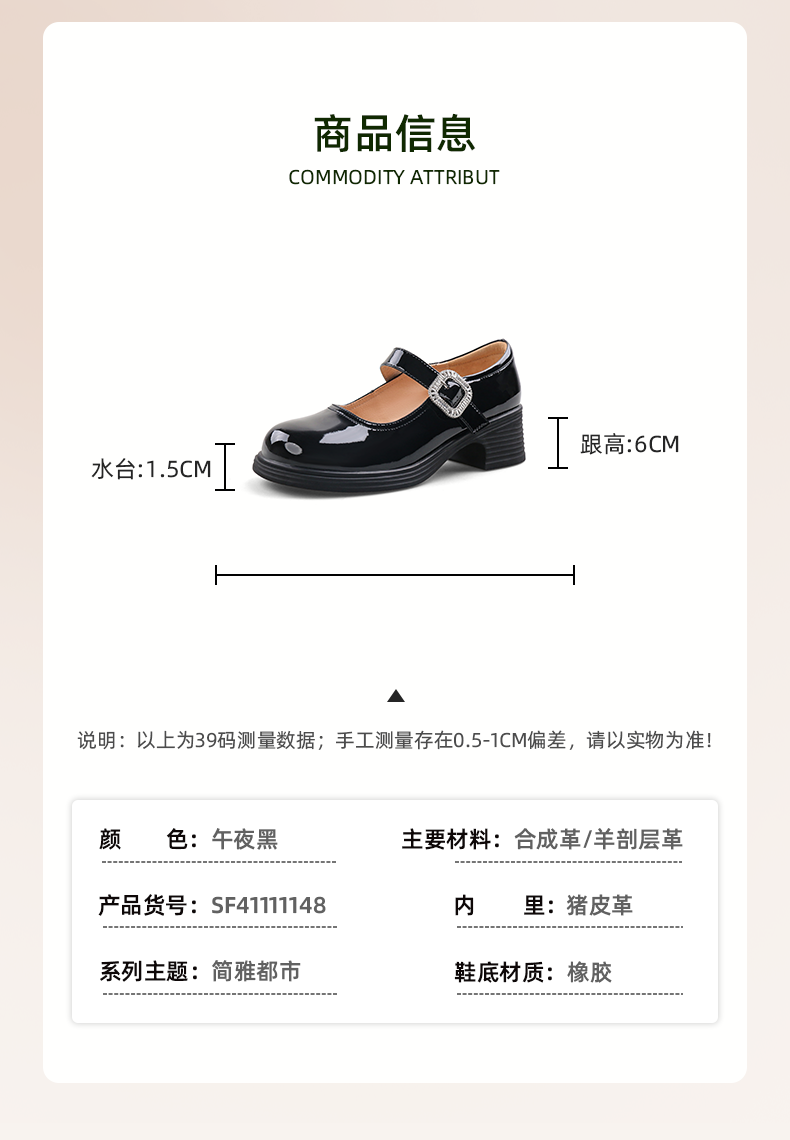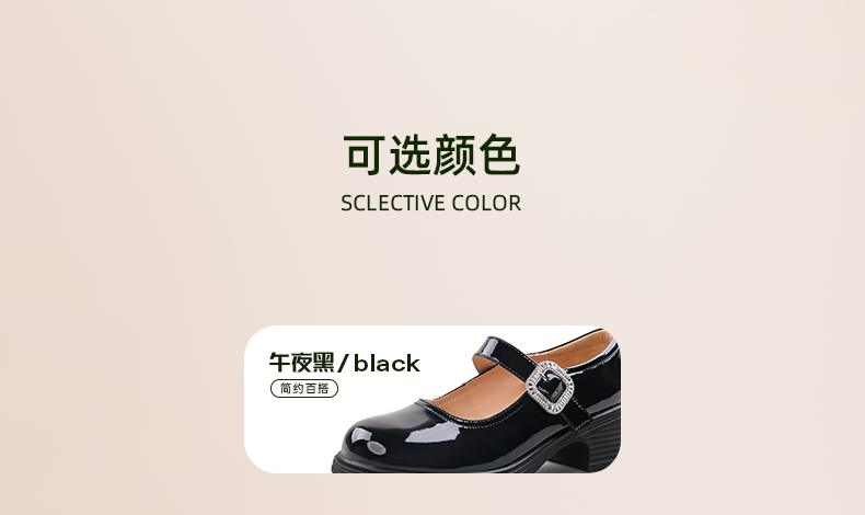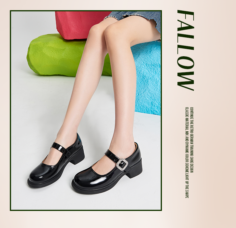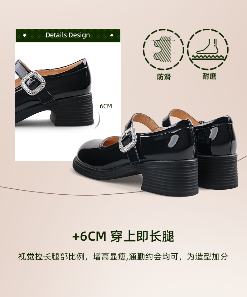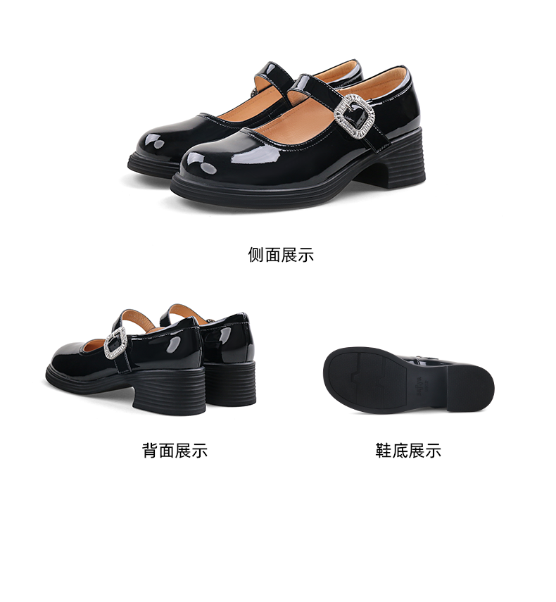Safiya/索菲娅2024春季新品 甜酷粗跟钻扣亮面一字带玛丽珍小皮鞋 SF41111148