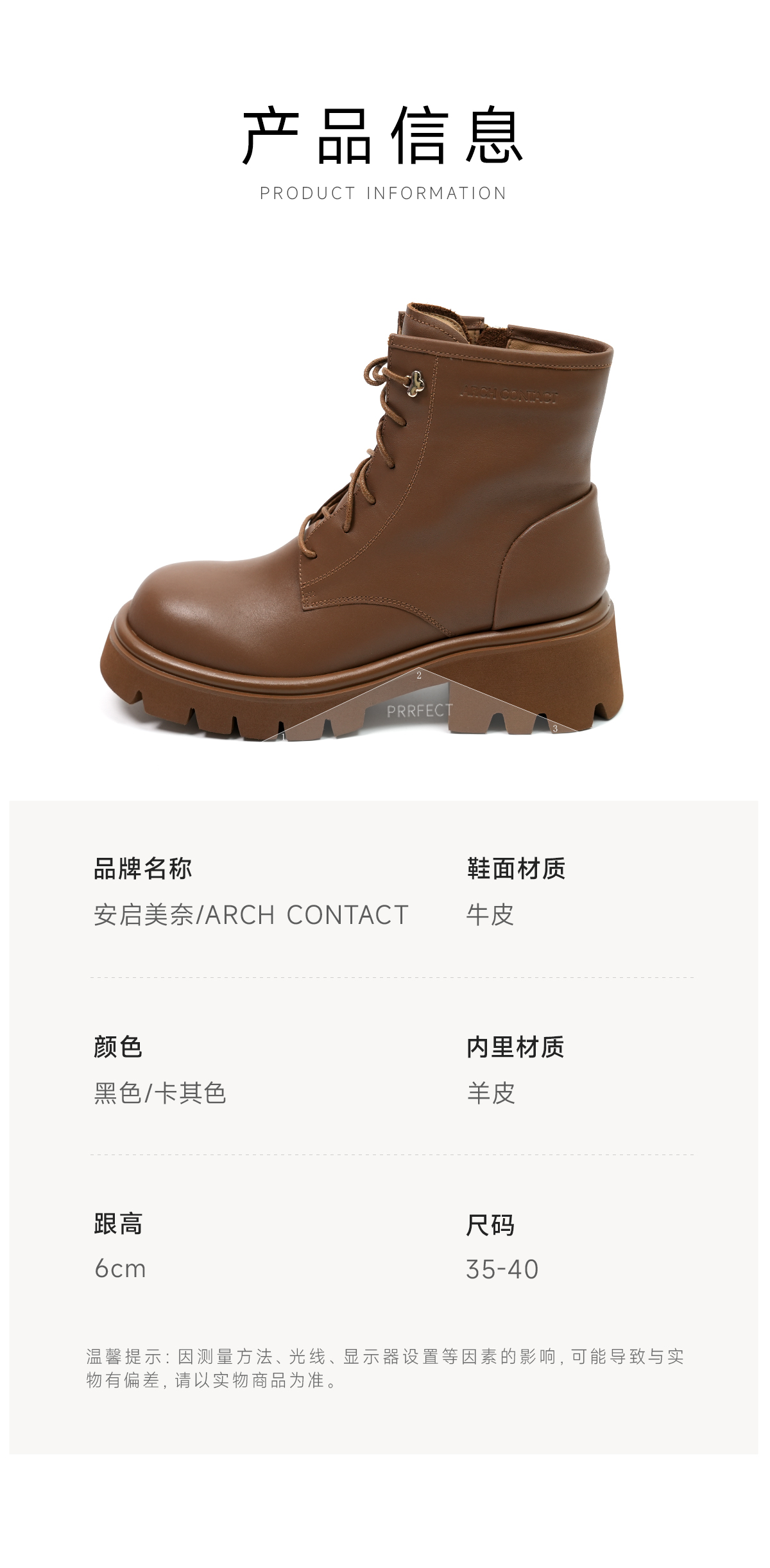 ARCHCONTACT安启美奈六孔厚底经典基础款马丁靴52966
