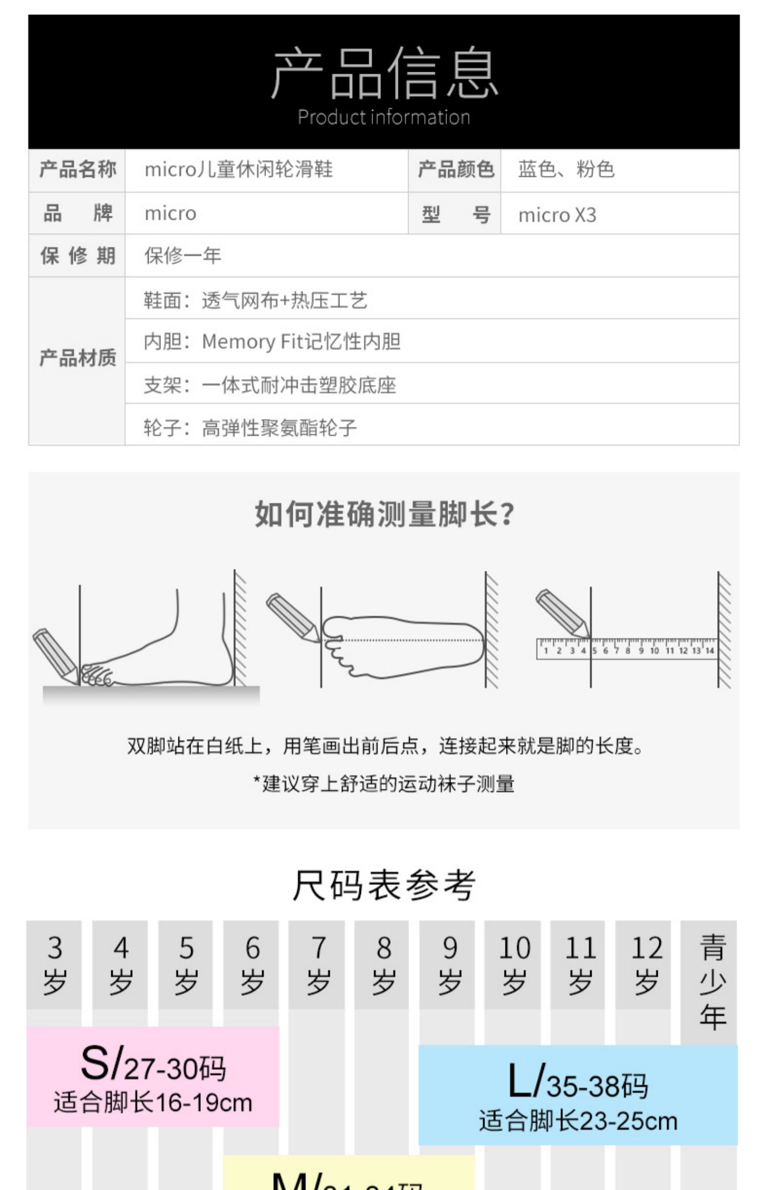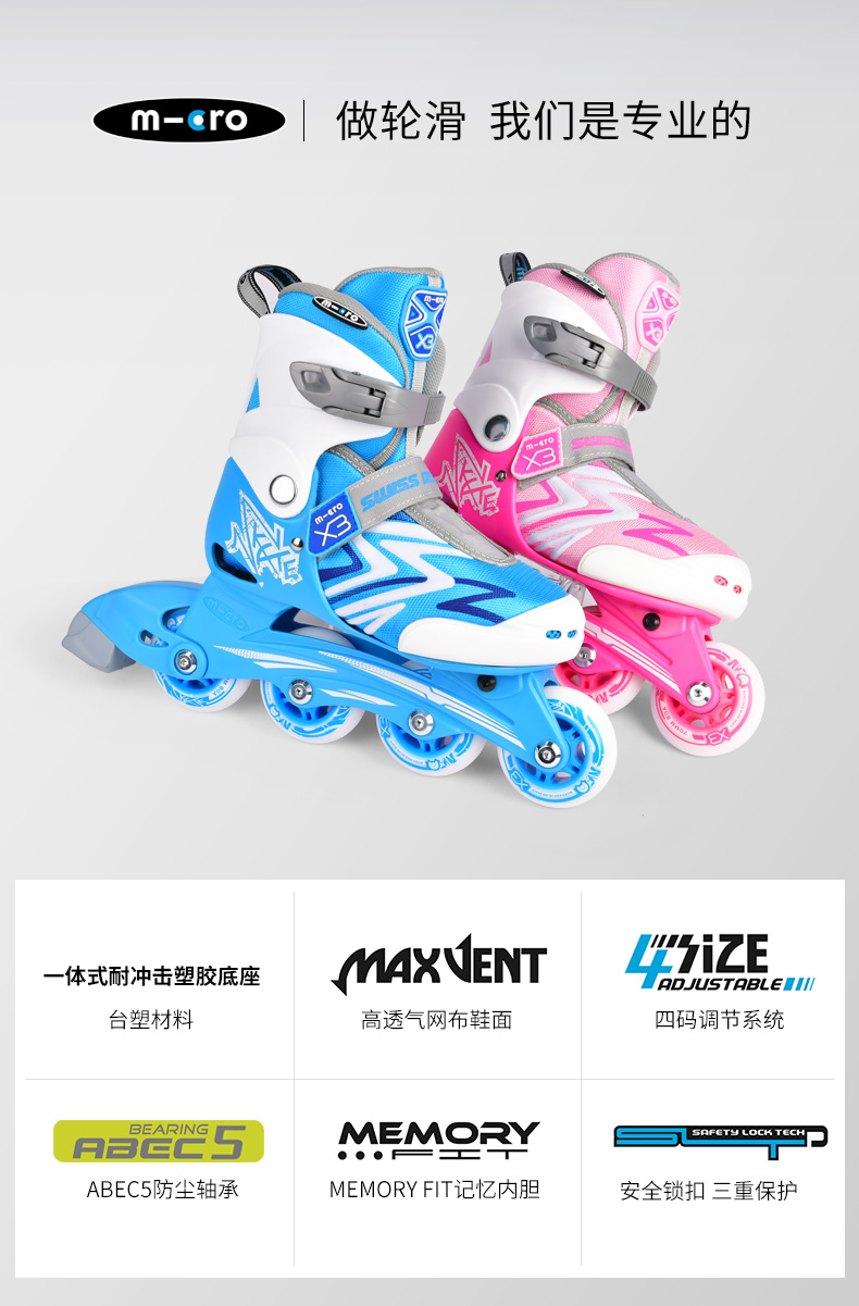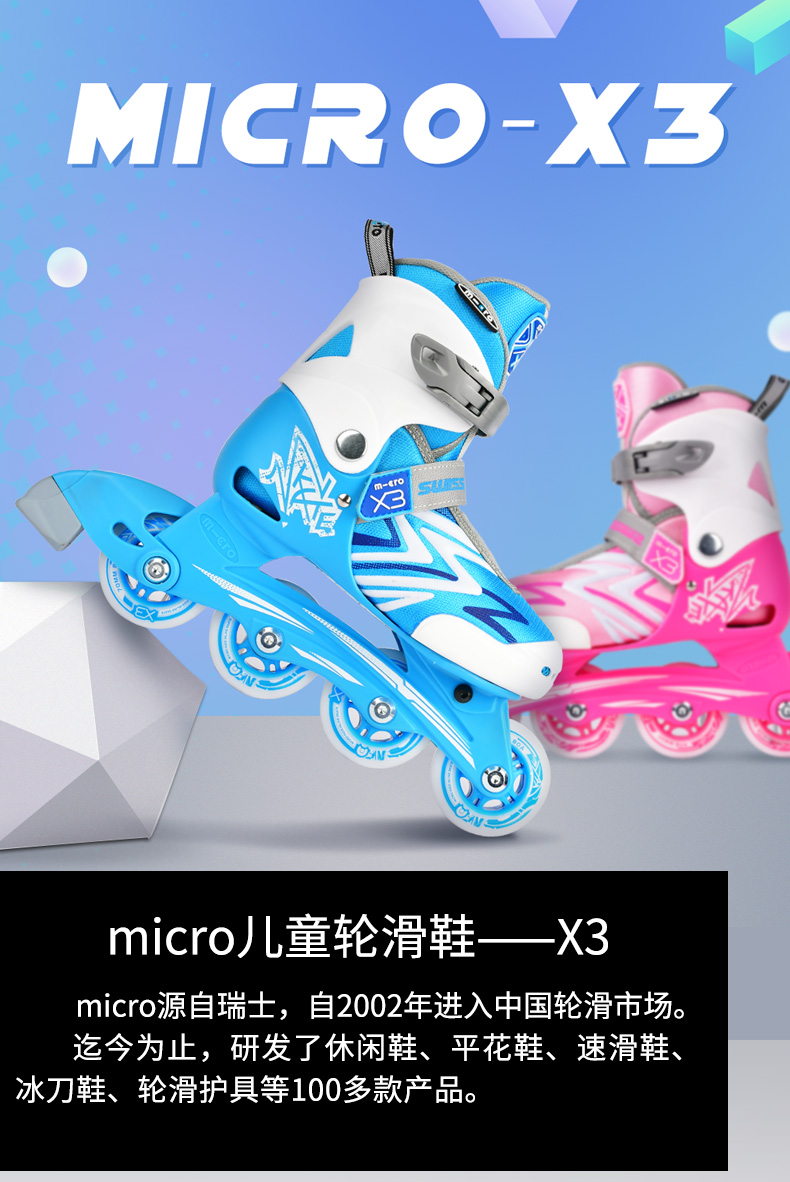 瑞士micro迈古溜冰鞋儿童轮滑鞋可调套装3-6-12男女旱冰鞋X3/LE