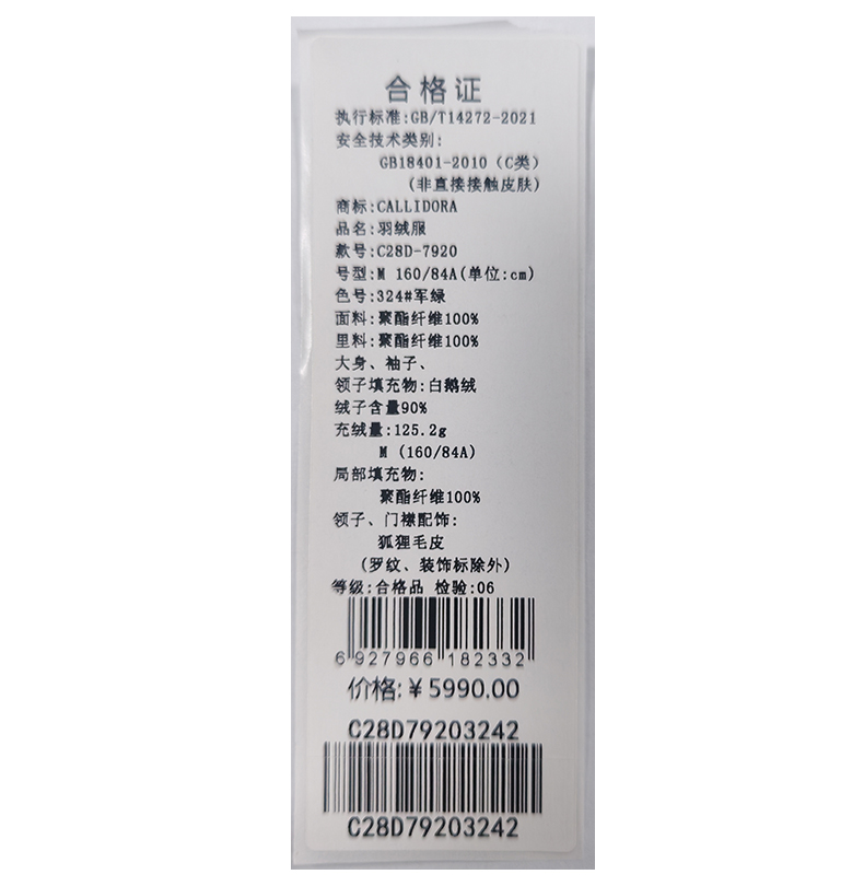 卡莉朵拉羽绒服C28D7920