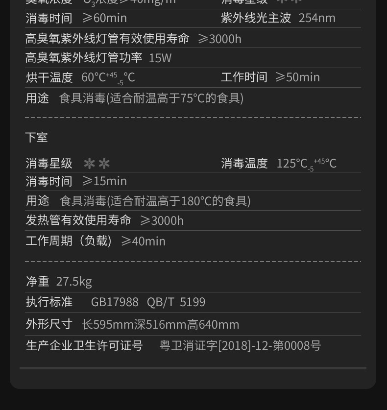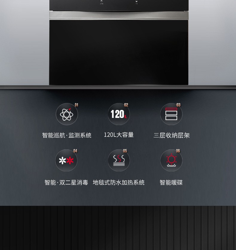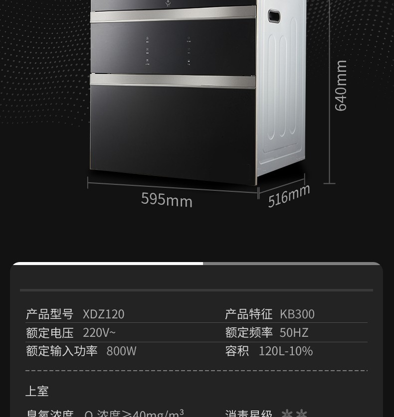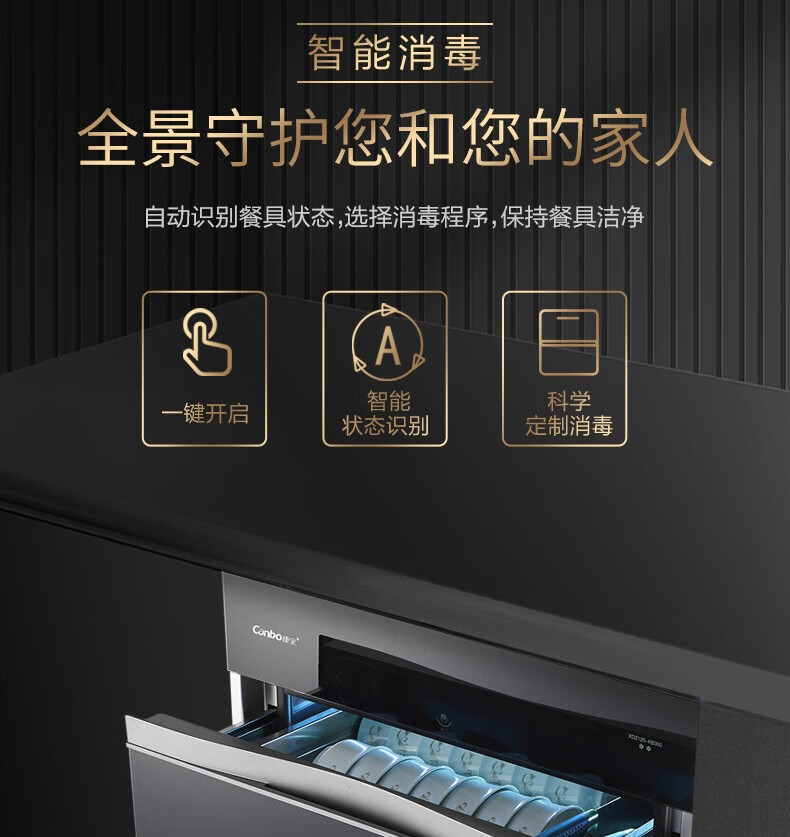 康宝(Canbo)消毒柜嵌入式 大容量 厨房抽屉式 家用 智能巡航监测 臭氧紫外线 二星高温消毒碗柜 XDZ120-KB300【120升】