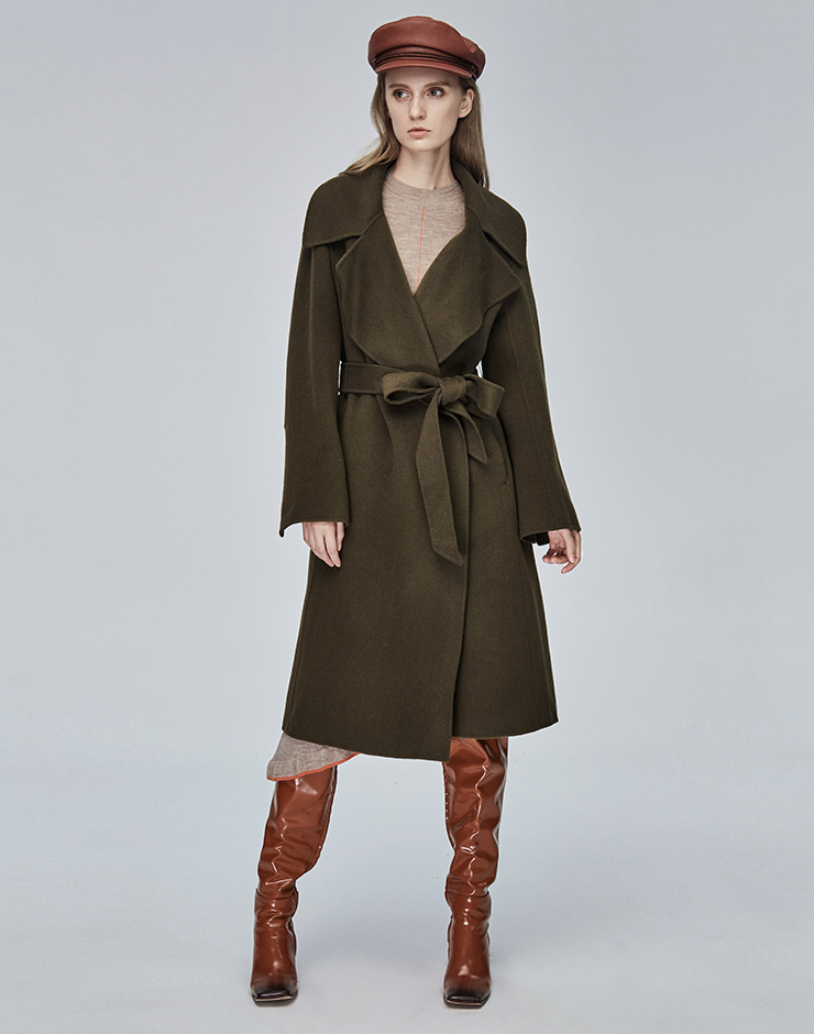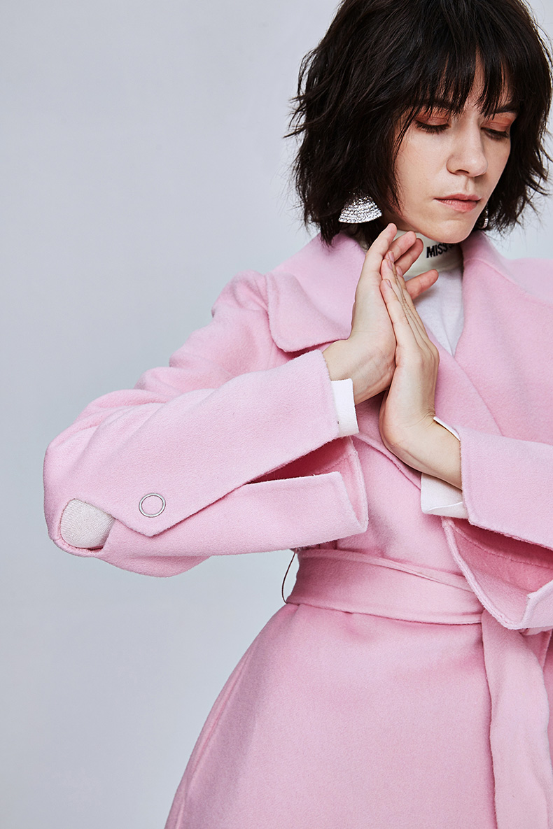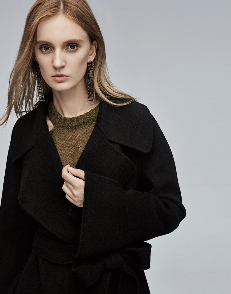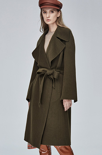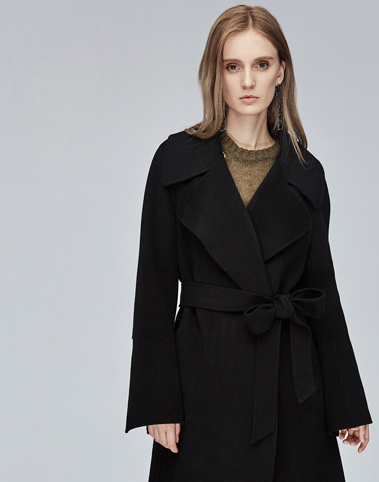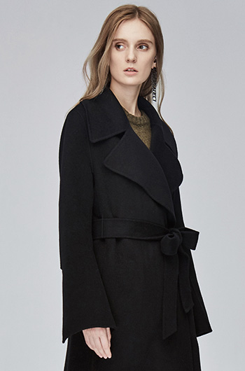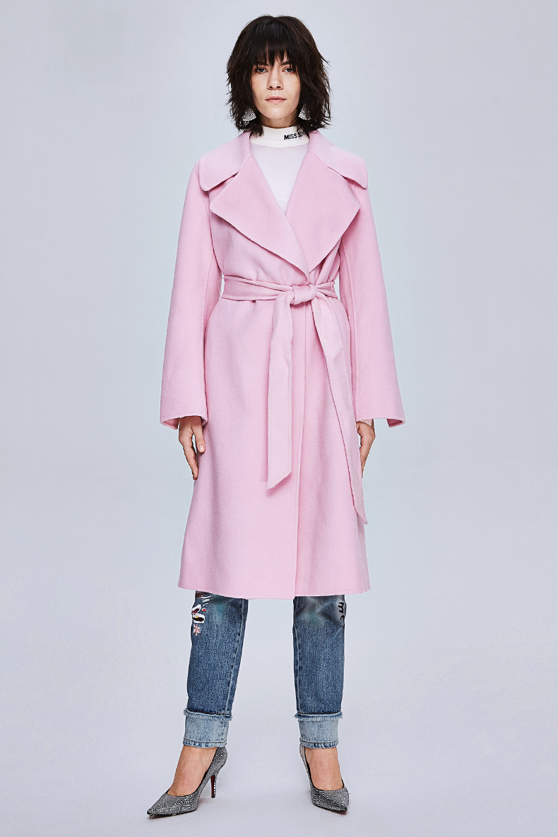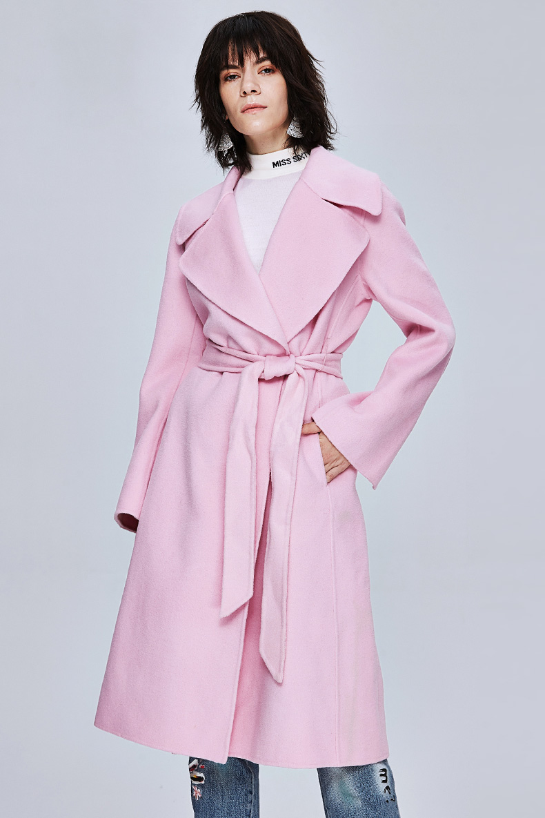 Miss Sixty冬季流行纯色翻领系带宽松长款时尚呢子大衣毛呢外套684MJ8310000