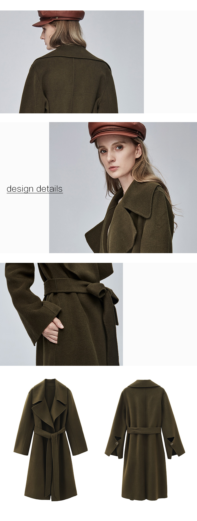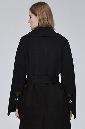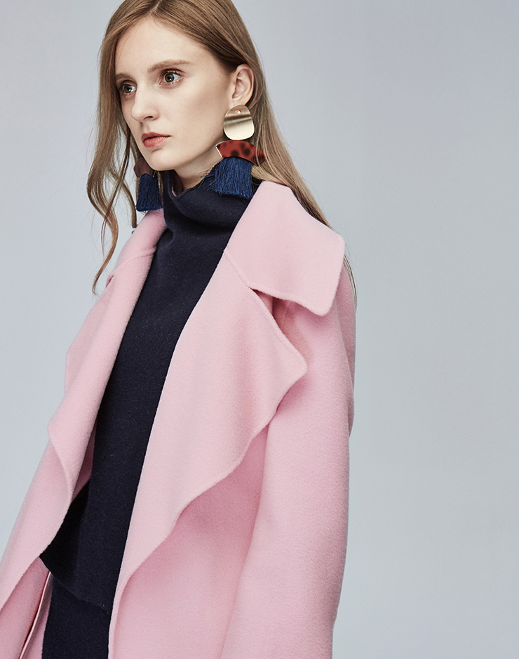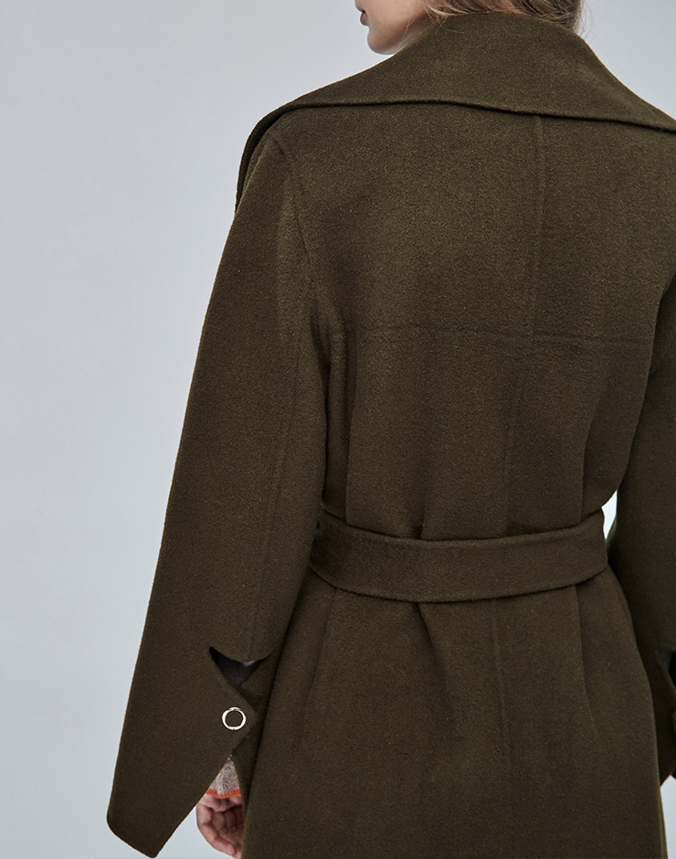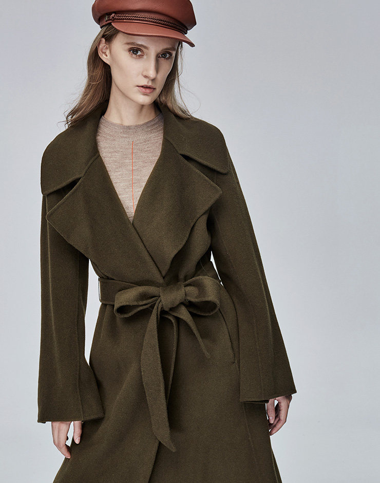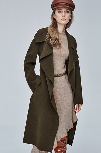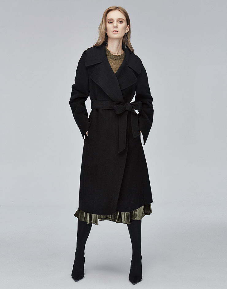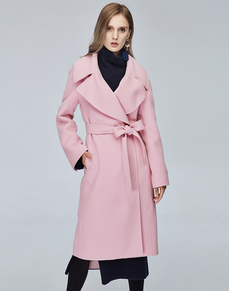 Miss Sixty冬季流行纯色翻领系带宽松长款时尚呢子大衣毛呢外套684MJ8310000