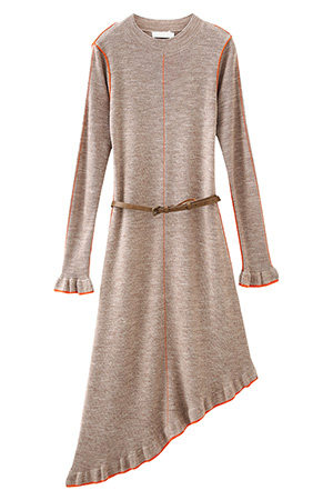 不对称长袖毛织连衣裙