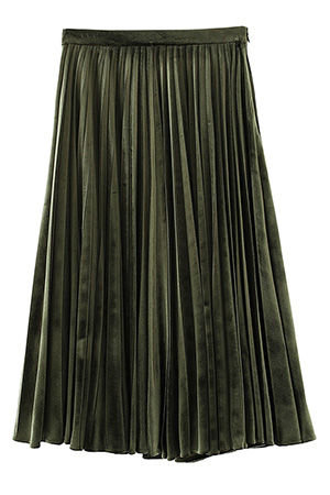 高腰丝绒百褶半身裙