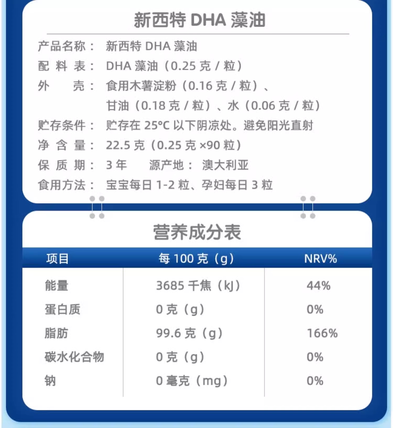 Slaite/新西特DHA海藻油澳洲宝宝原装进口纯净海藻油软胶囊/XXT-004515