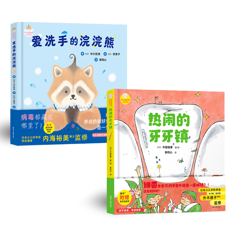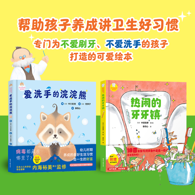 【3-6岁】《好习惯养成系列绘本》(全2册《热闹的牙牙镇》《爱洗手的浣浣熊》)