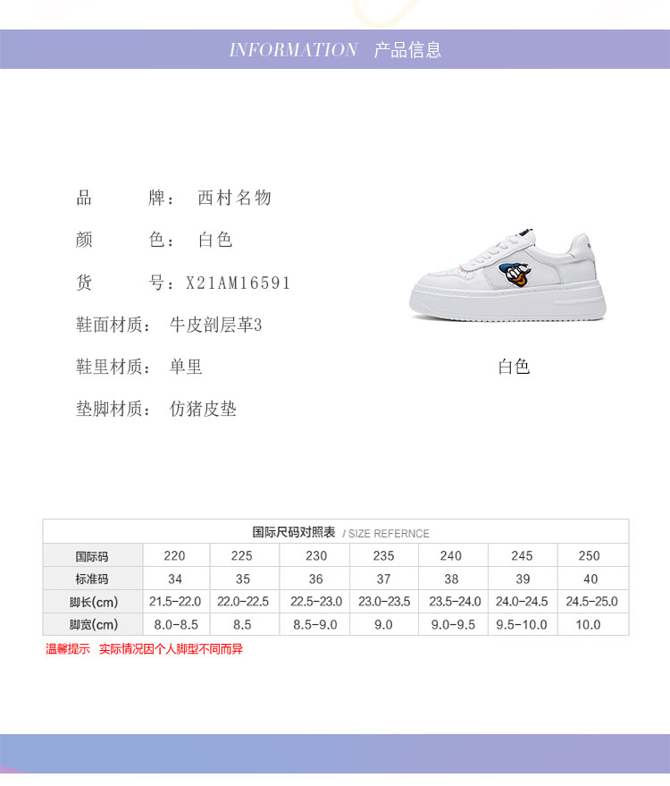 西村名物2021新款时尚休闲鞋小白鞋X21AM16591