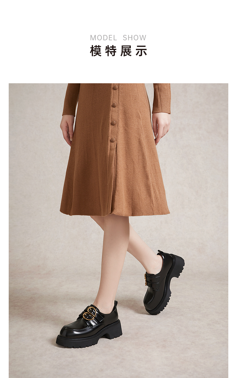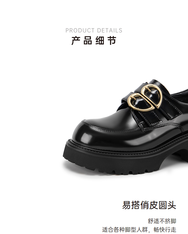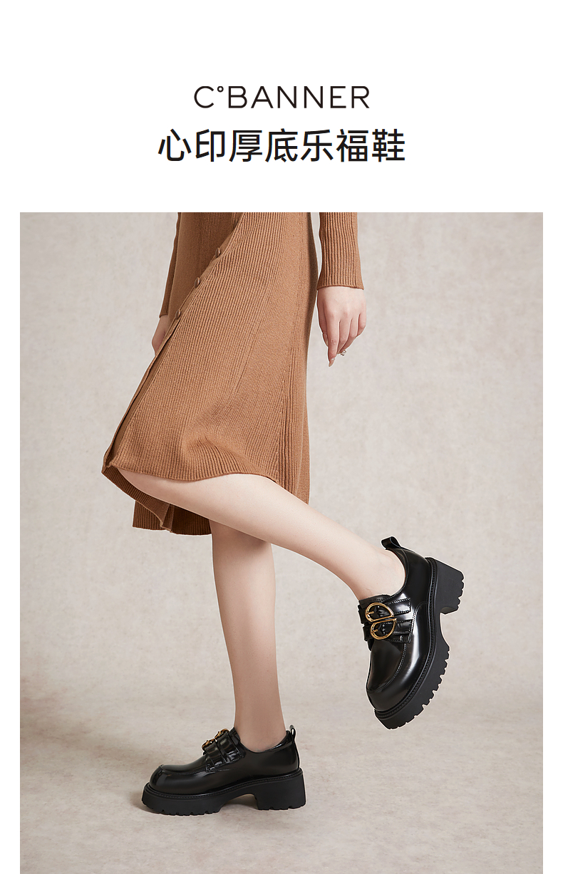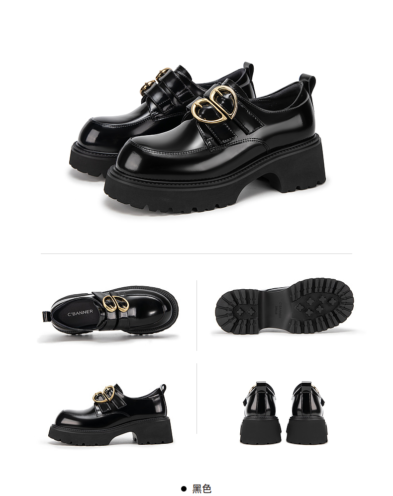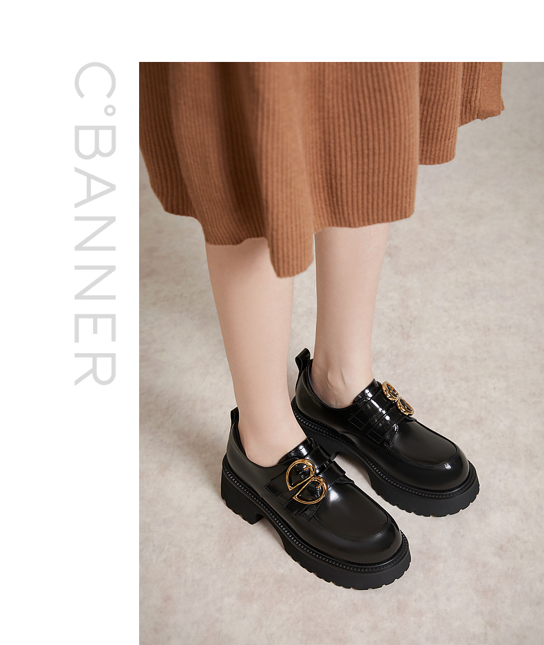 千百度经典通勤乐福鞋女款厚底黑色一脚蹬JK小皮鞋A25163720