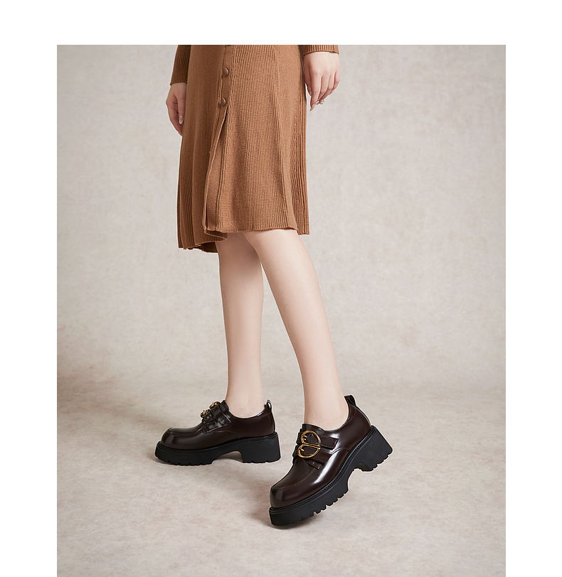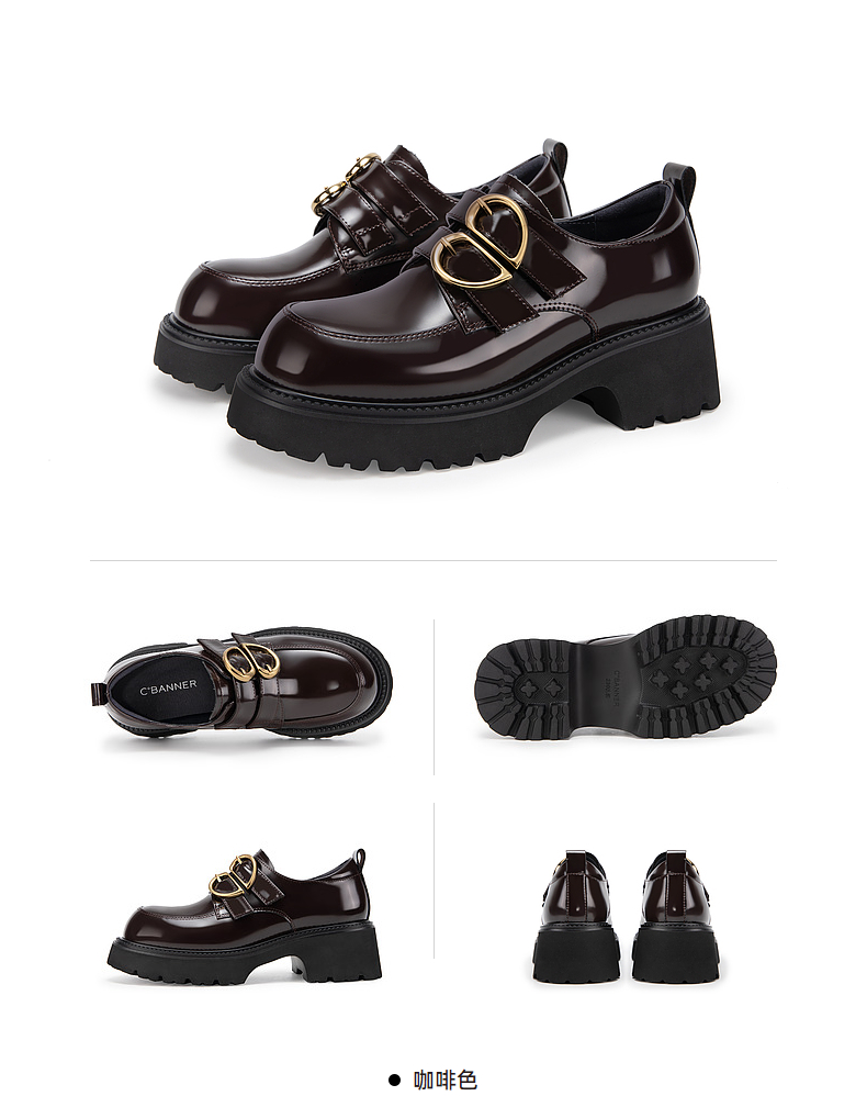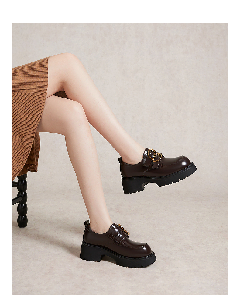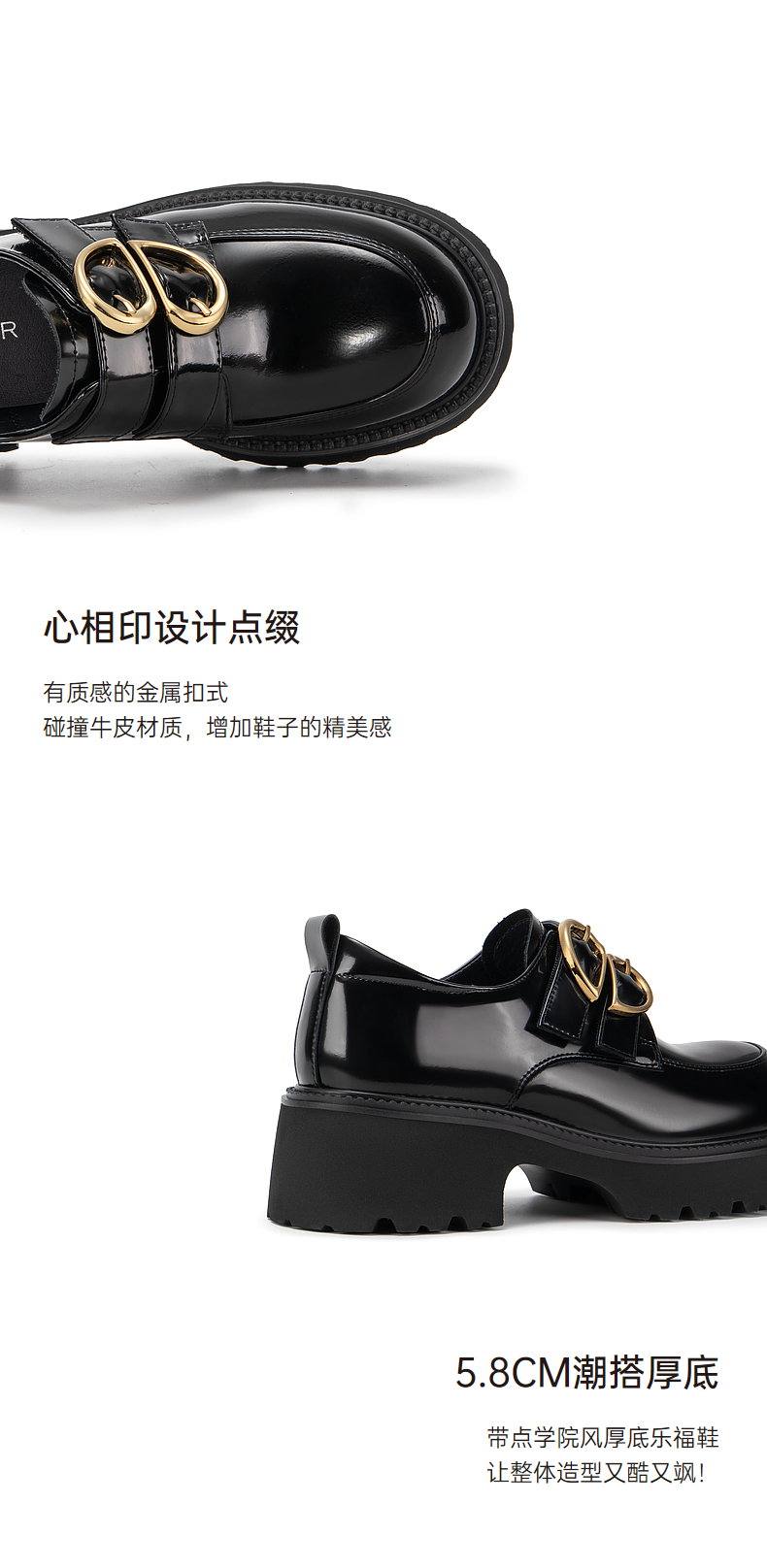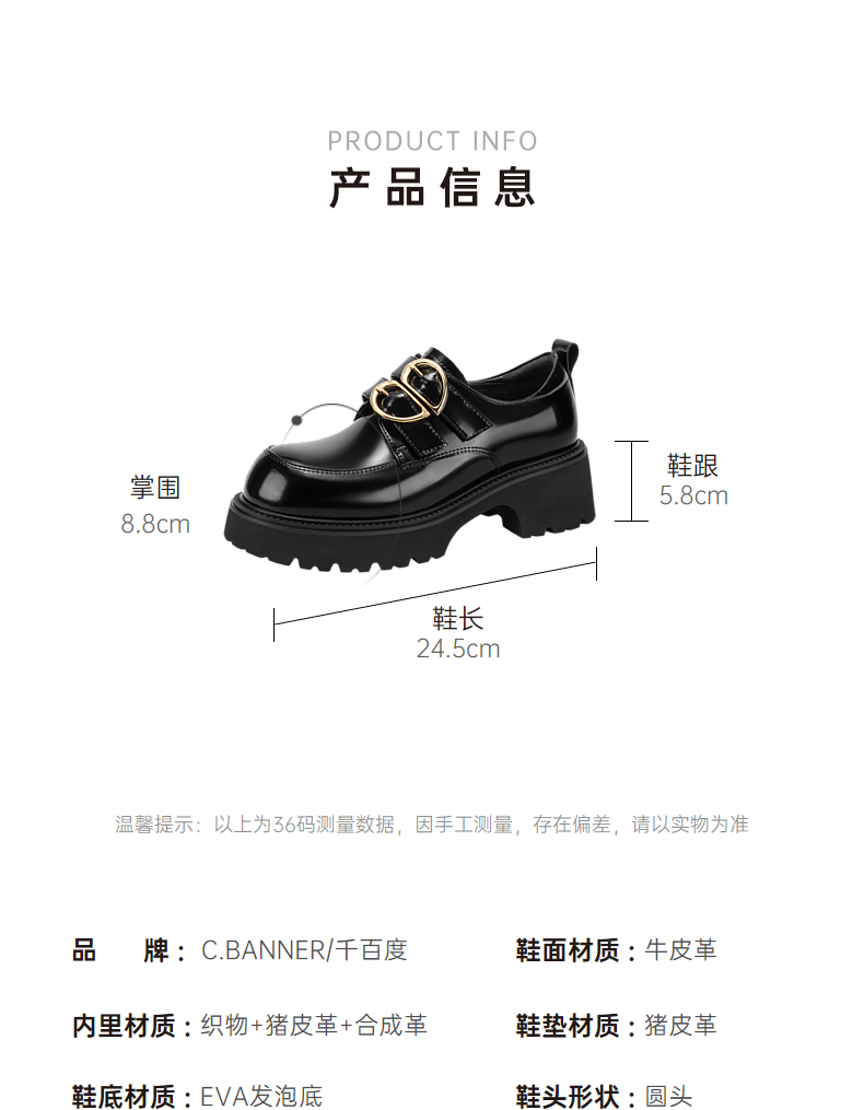 千百度经典通勤乐福鞋女款厚底黑色一脚蹬JK小皮鞋A25163720