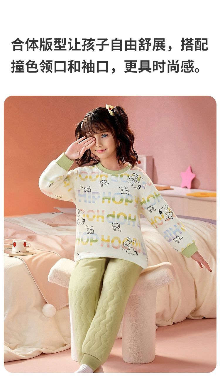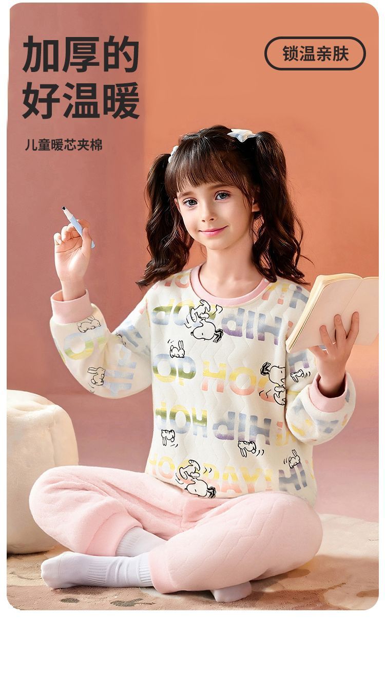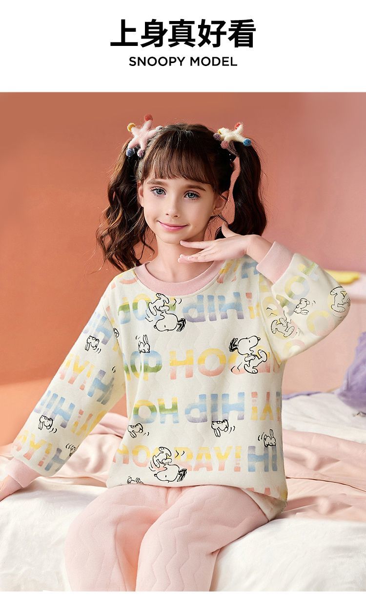 【90-130】【三层夹棉】【史努比】女童夹棉保暖内衣套装