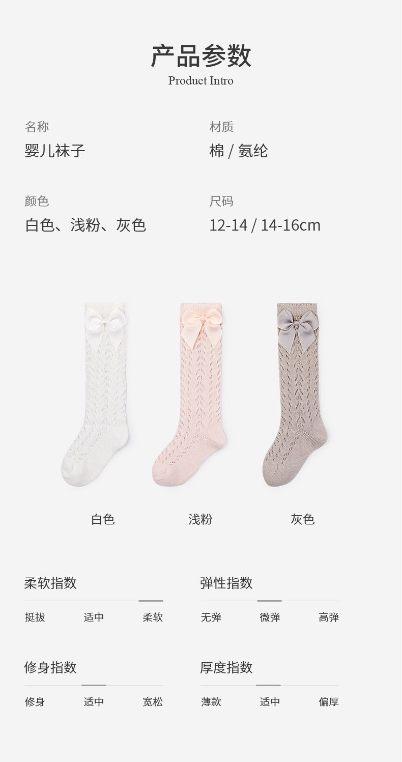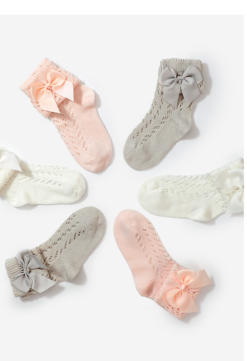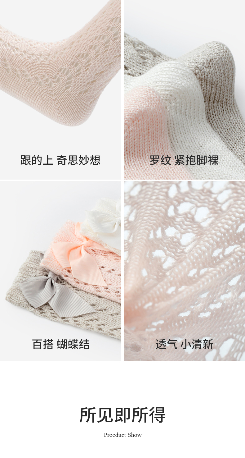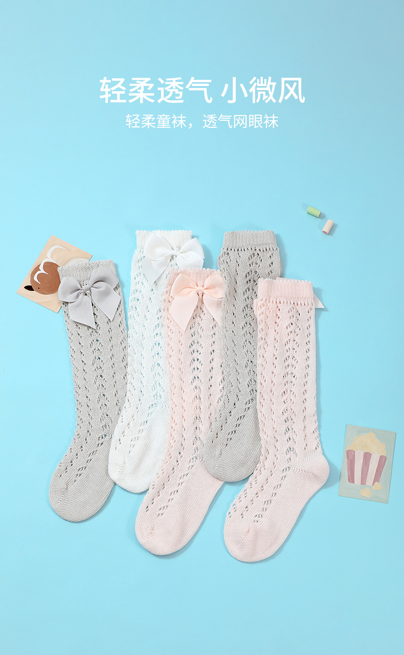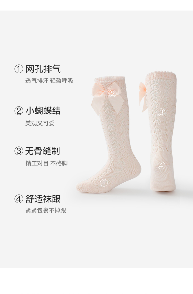【每人仅兑换一次】泰兰尼斯fit长筒透气小清新宝宝袜子蝴蝶结薄款精梳棉袜儿童袜 F22NA50135