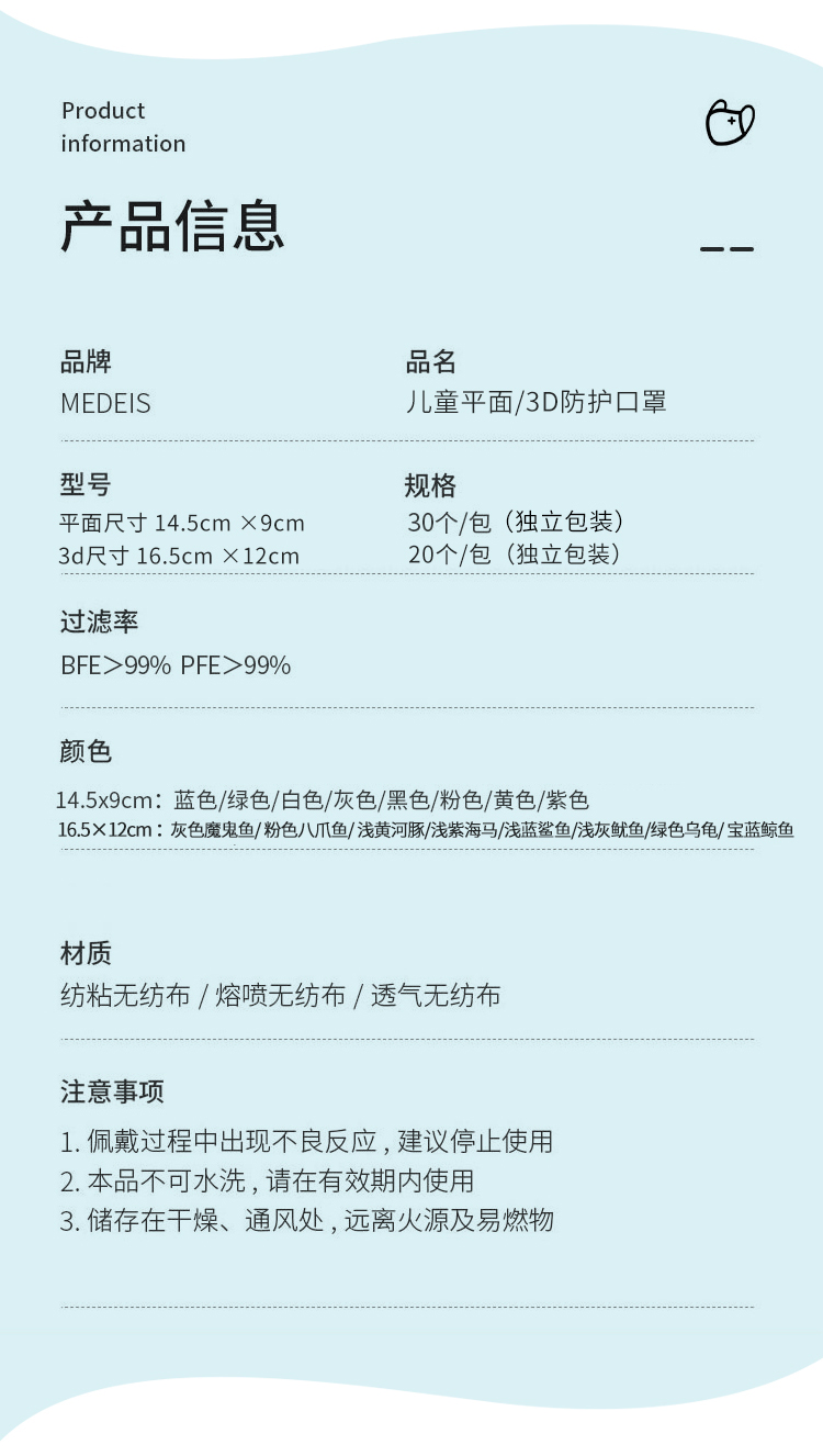 【云优选】MEDIES儿童款高颜值口罩 口罩20/30片 4岁+