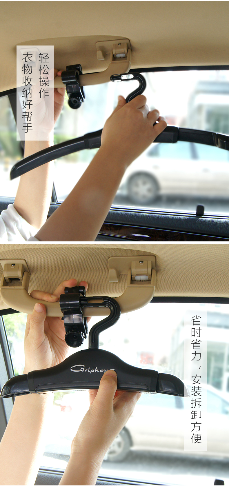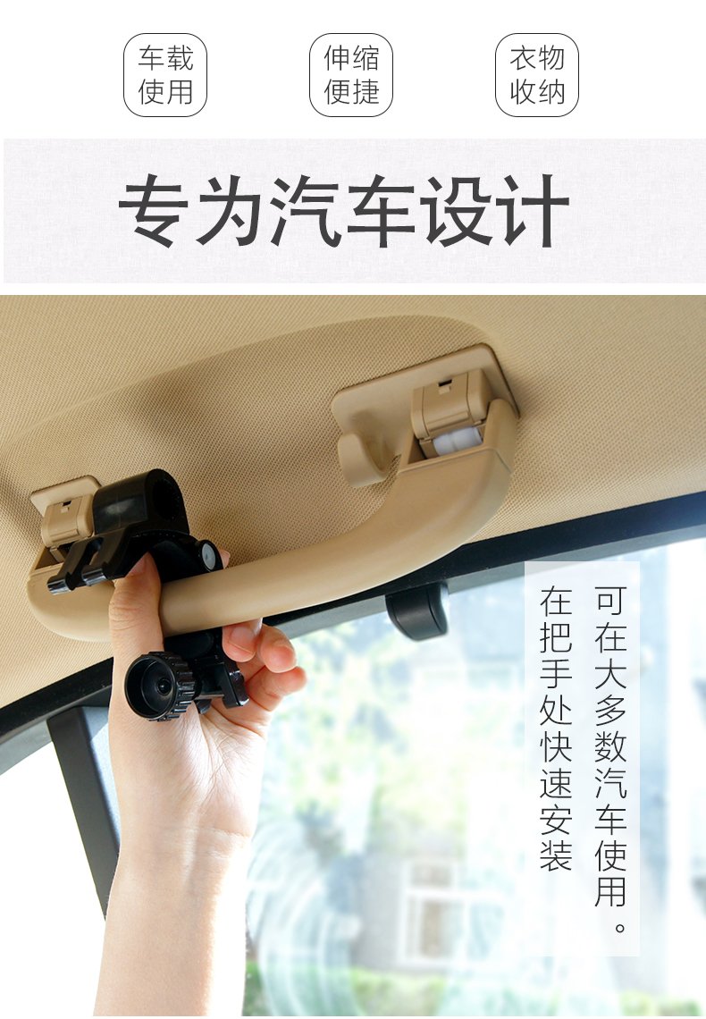 利快日本进口车载伸缩衣架快速收纳不占空间汽车后排挂衣架衣服架