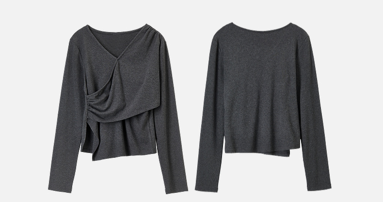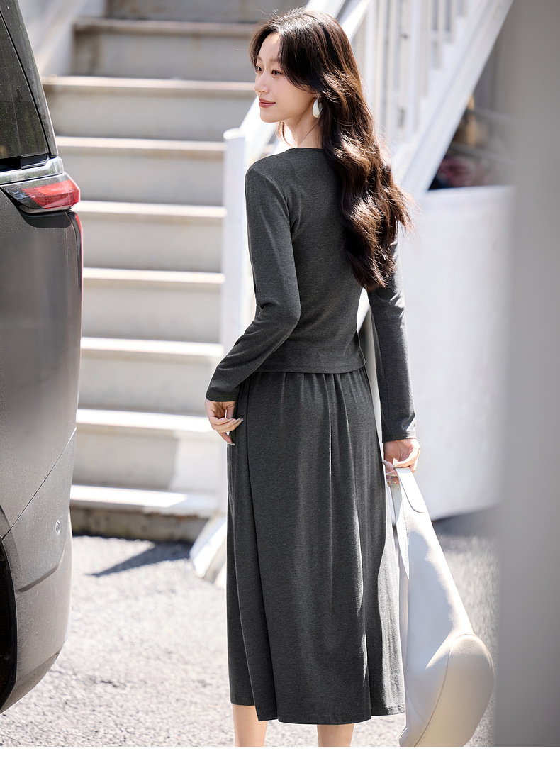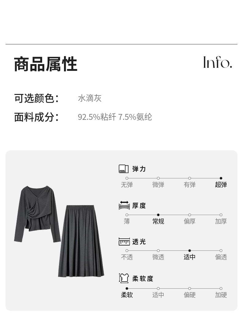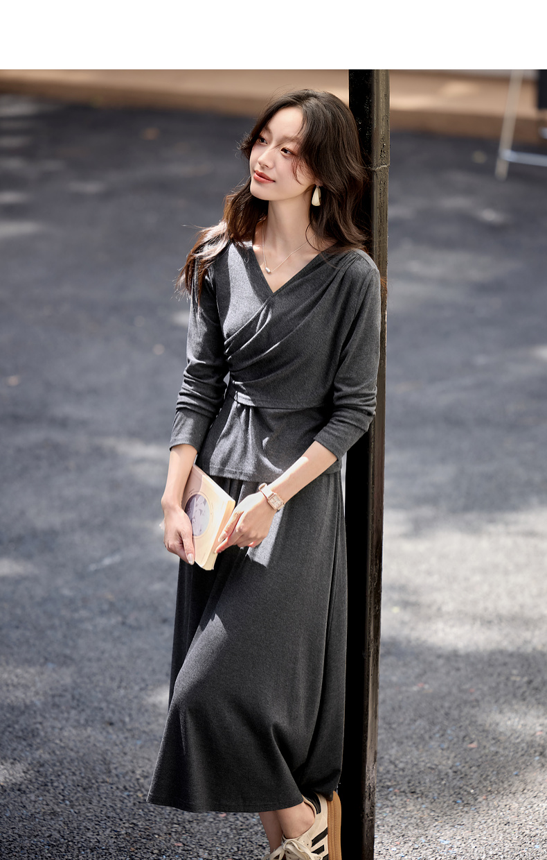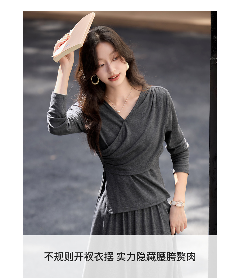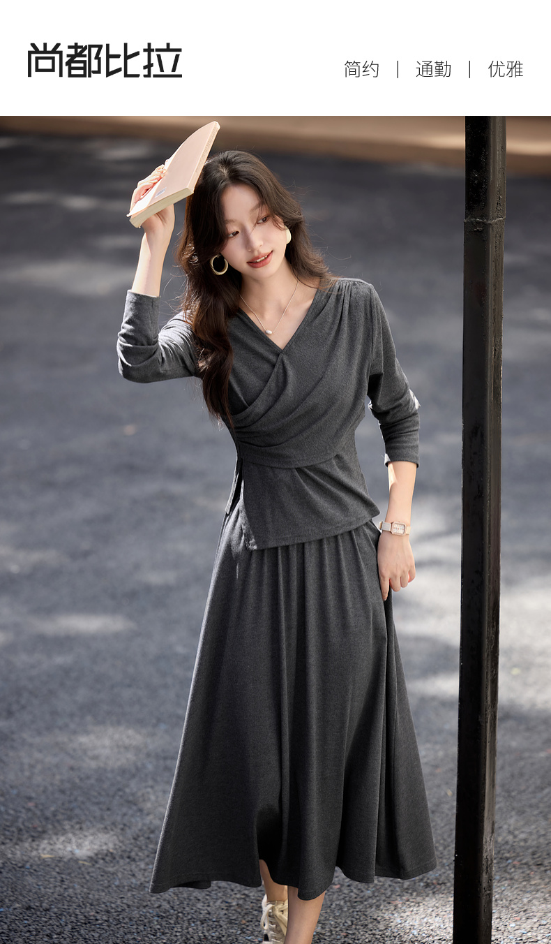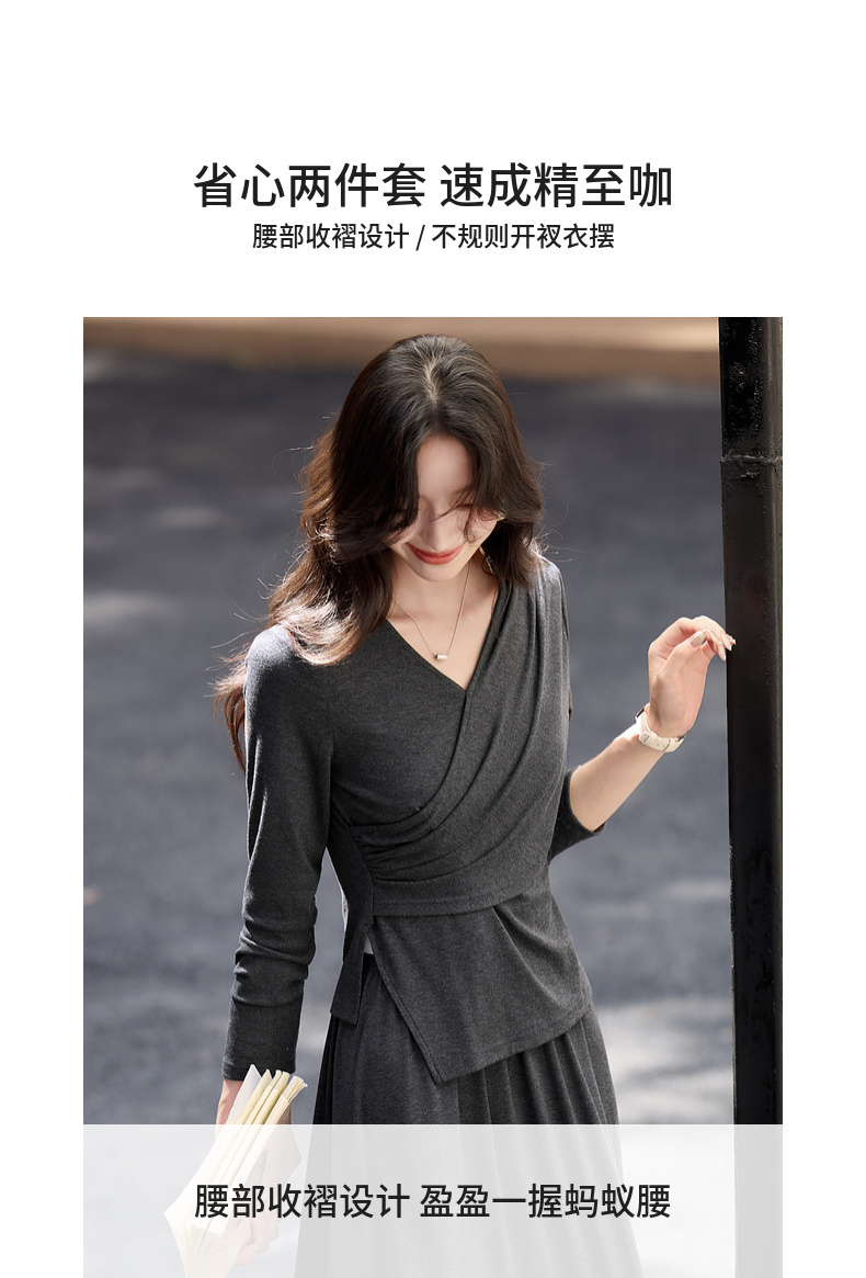 【内购】简约通勤交叠V领收腰上身橡筋腰垂感A字半身裙针织套装-153ZF3261X