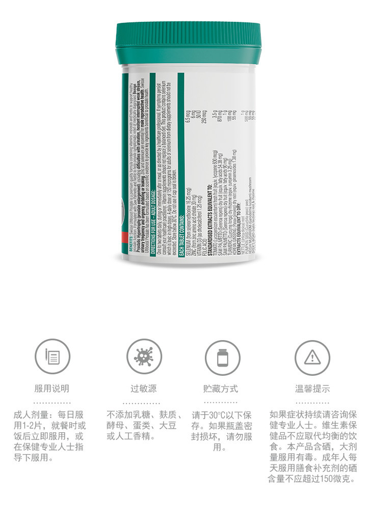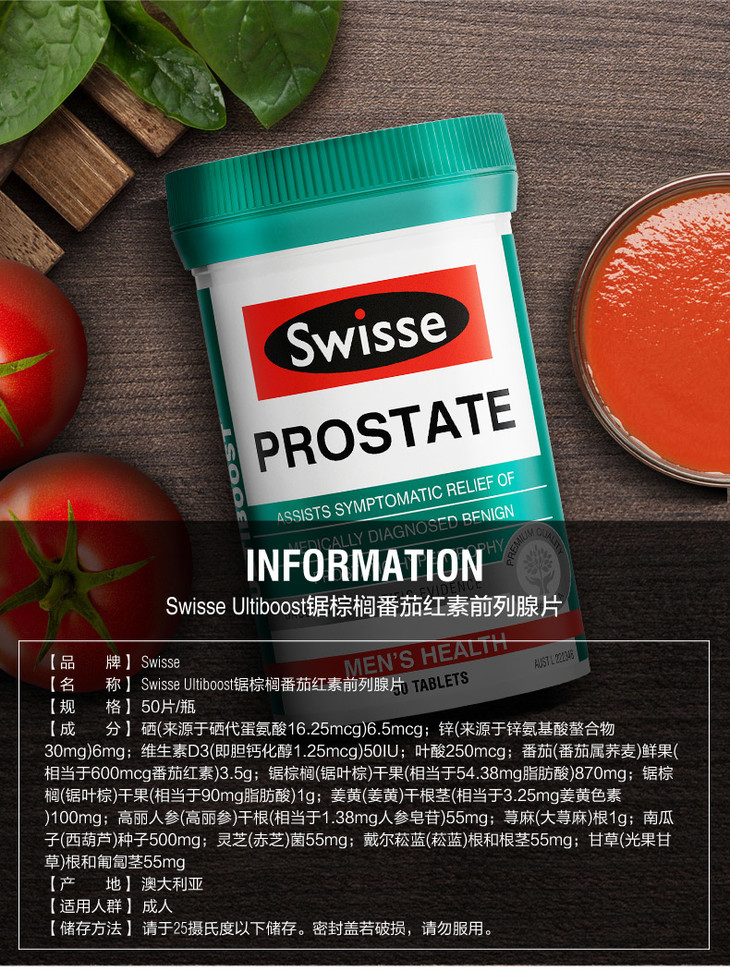 【香港直邮】澳洲Swisse番茄红素前列腺片50粒/瓶利尿提高精子活力香港直邮