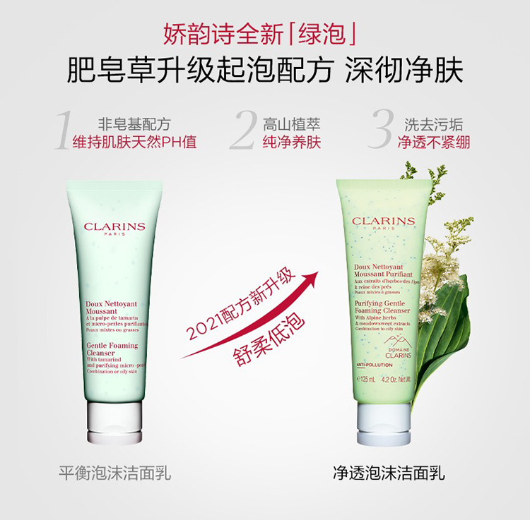 CLARINS/娇韵诗 净透泡沫洁面乳【绿吸盘】125ml