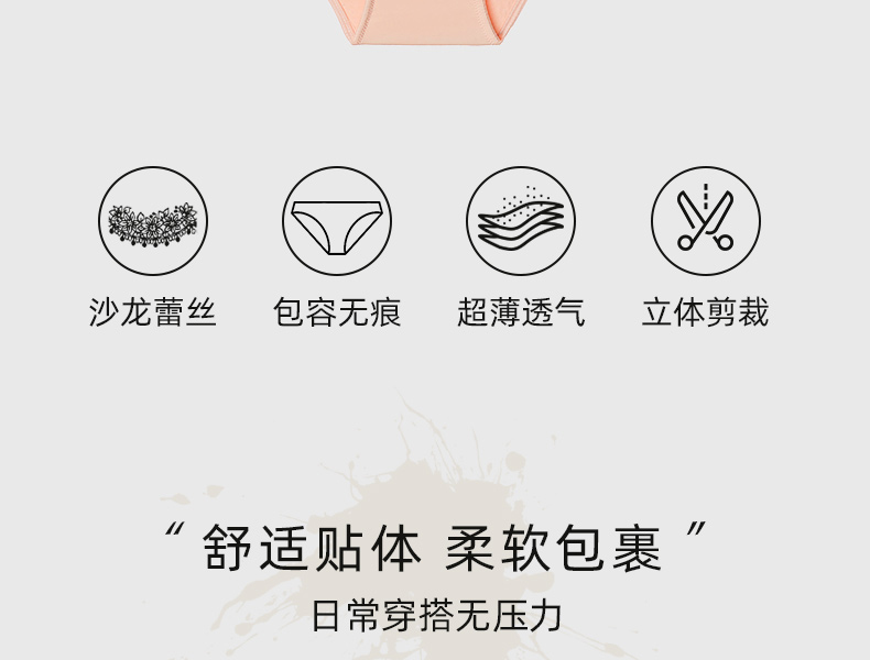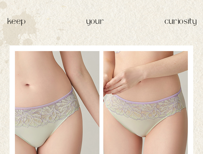 3条98元好奇蜜斯舒适中腰蕾丝三角内裤女抗菌纯棉裆新款提臀 希贝尔内裤