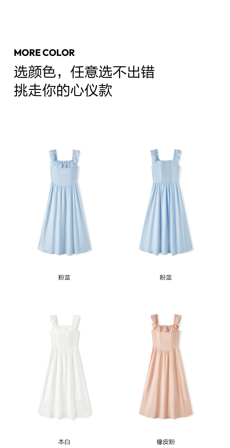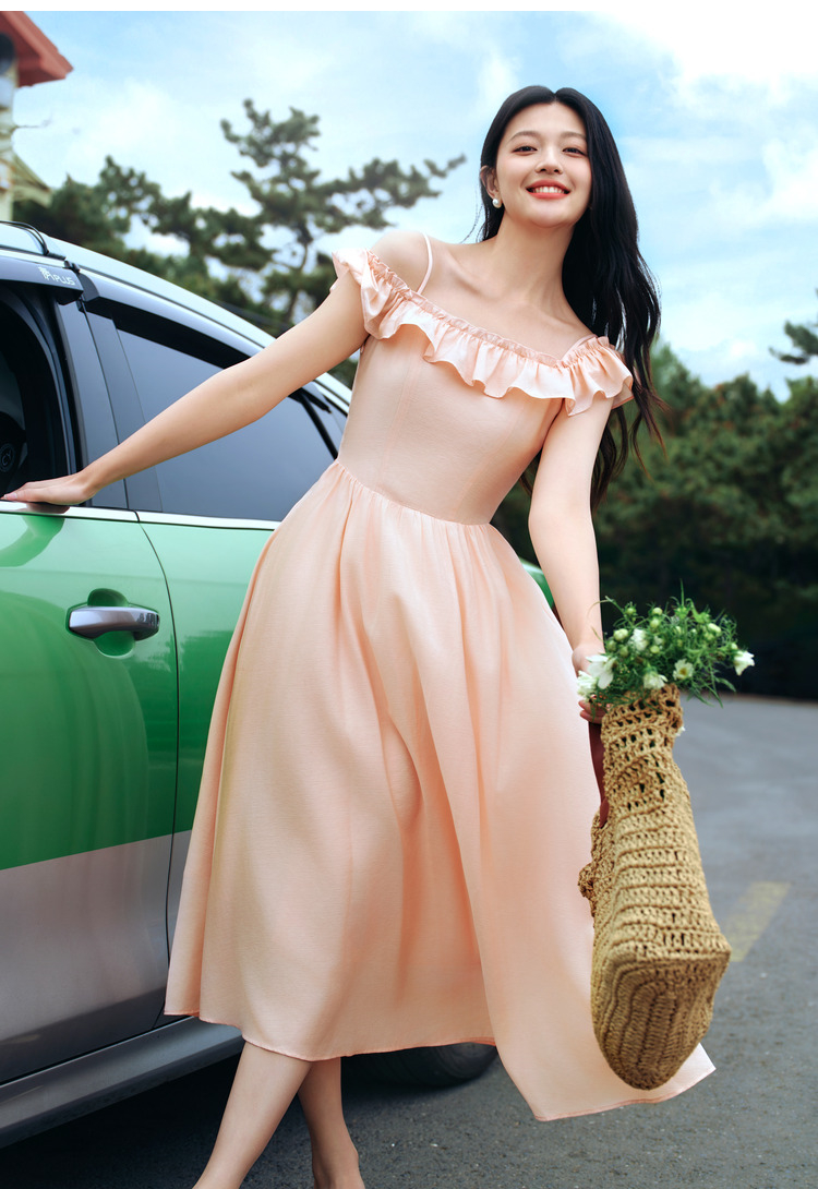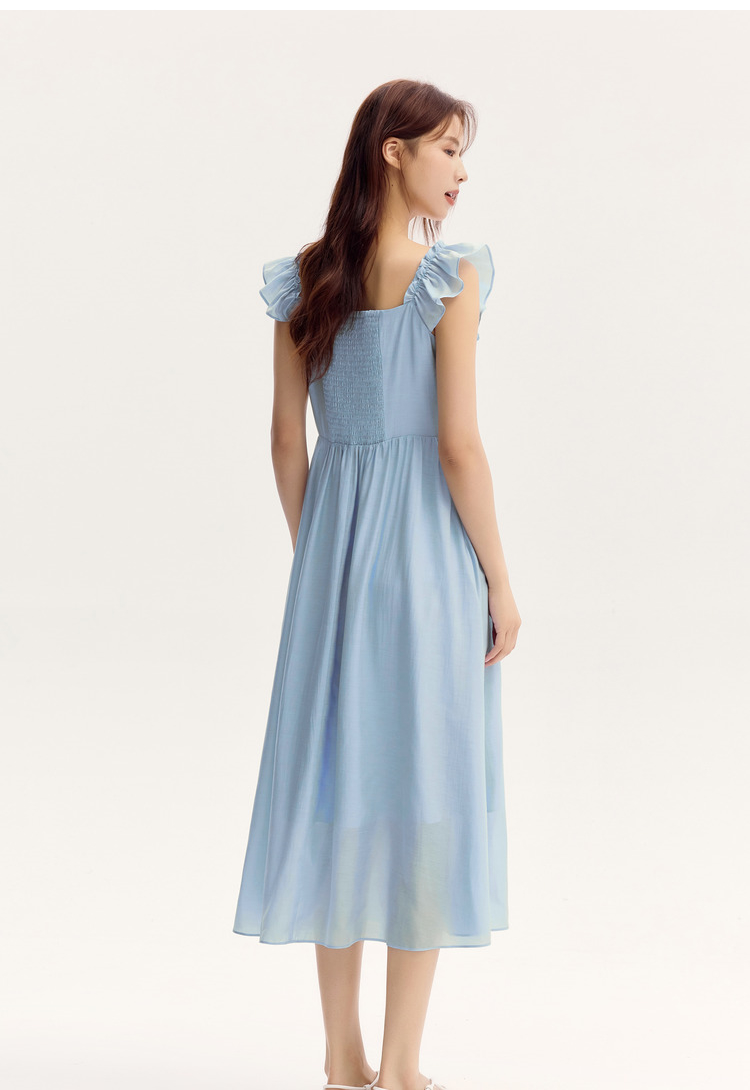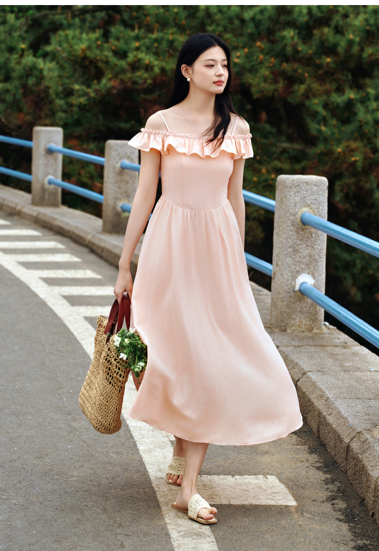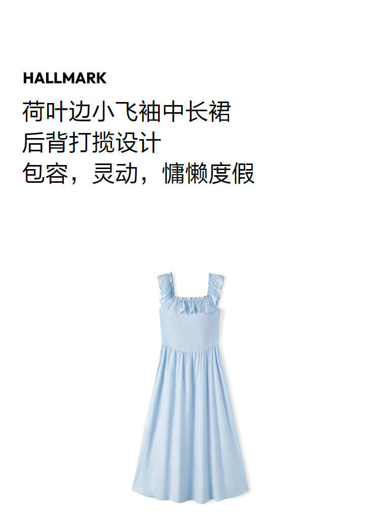 森马连衣裙女修身荷叶边甜美风慵懒新款夏季小飞袖中长裙温柔