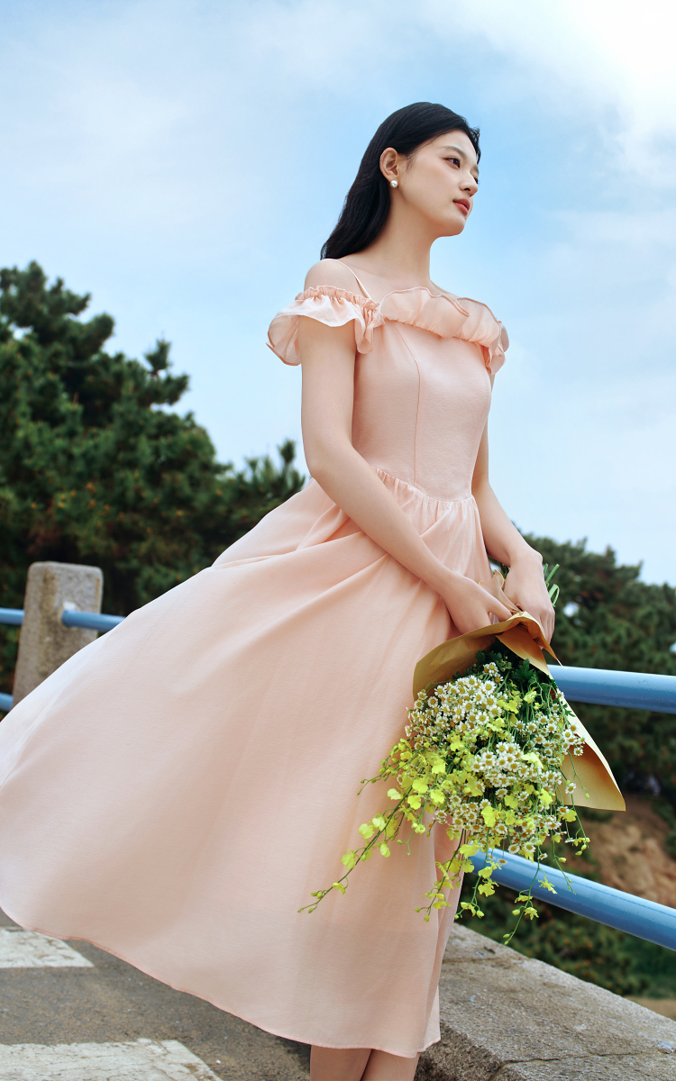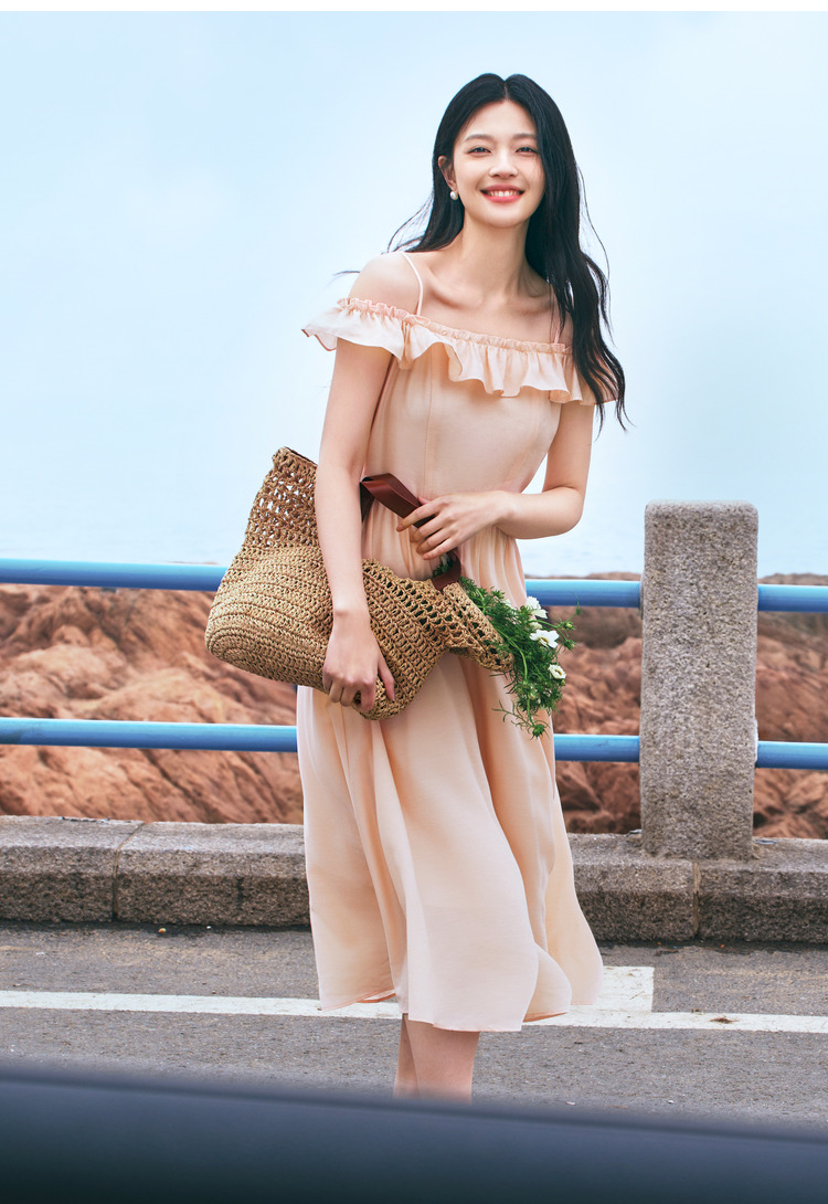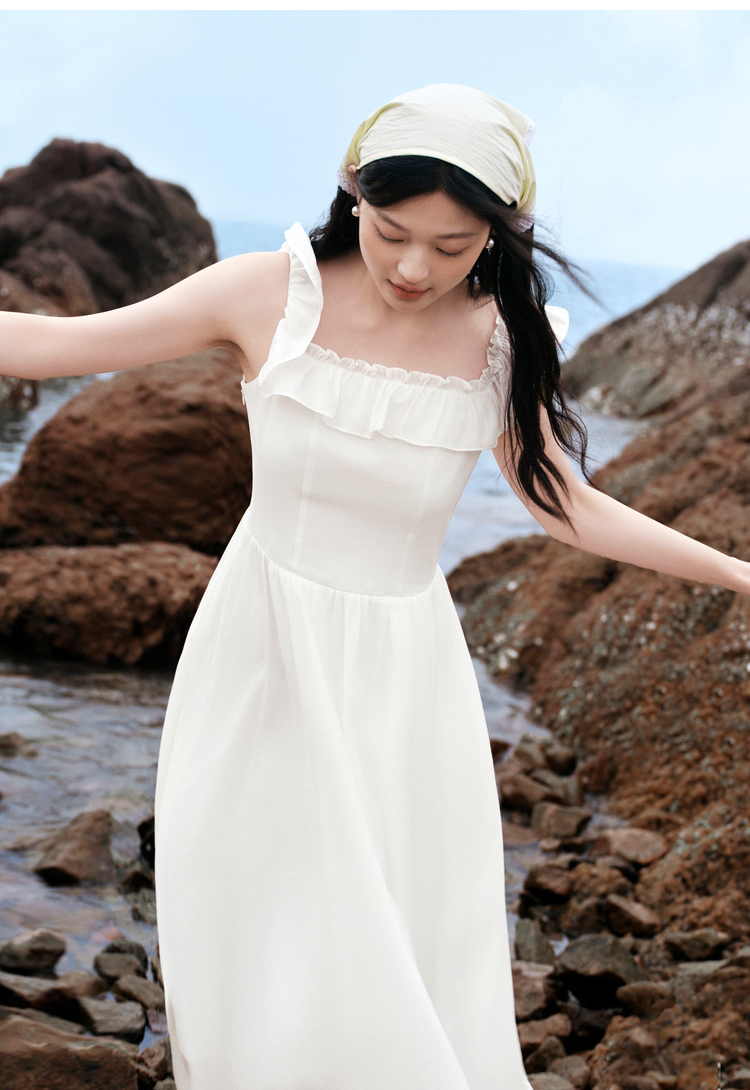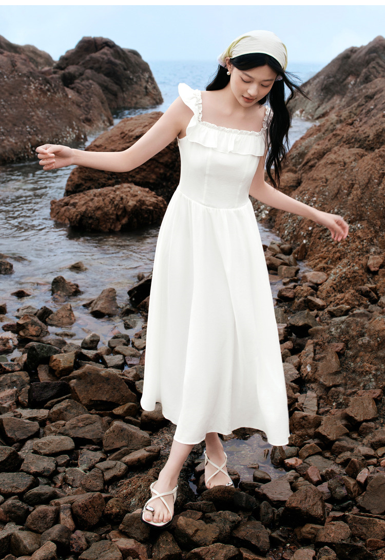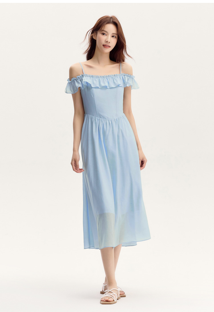 森马连衣裙女修身荷叶边甜美风慵懒新款夏季小飞袖中长裙温柔