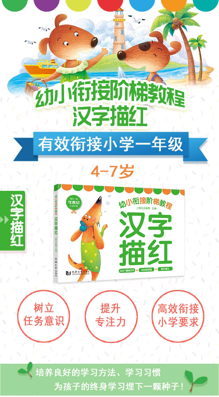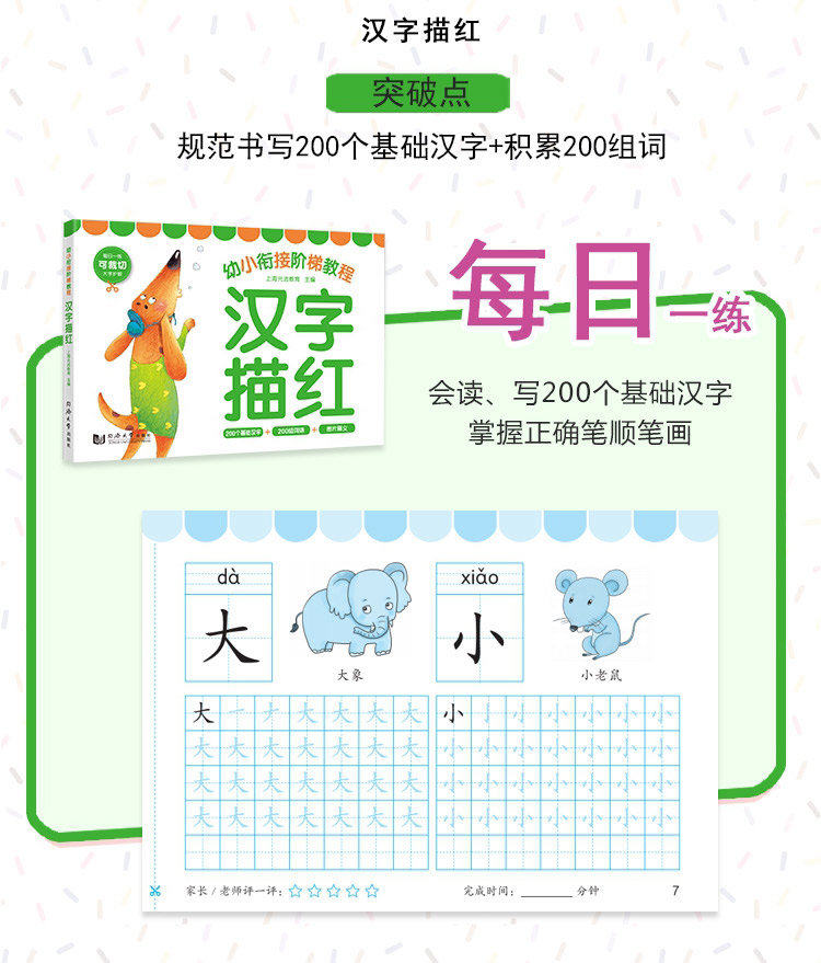 正版现货 幼小衔接阶梯教程 汉字描红 幼儿汉字启蒙教育书籍 幼儿图图画画思维训练动小手激发脑部发育左右脑开发书籍