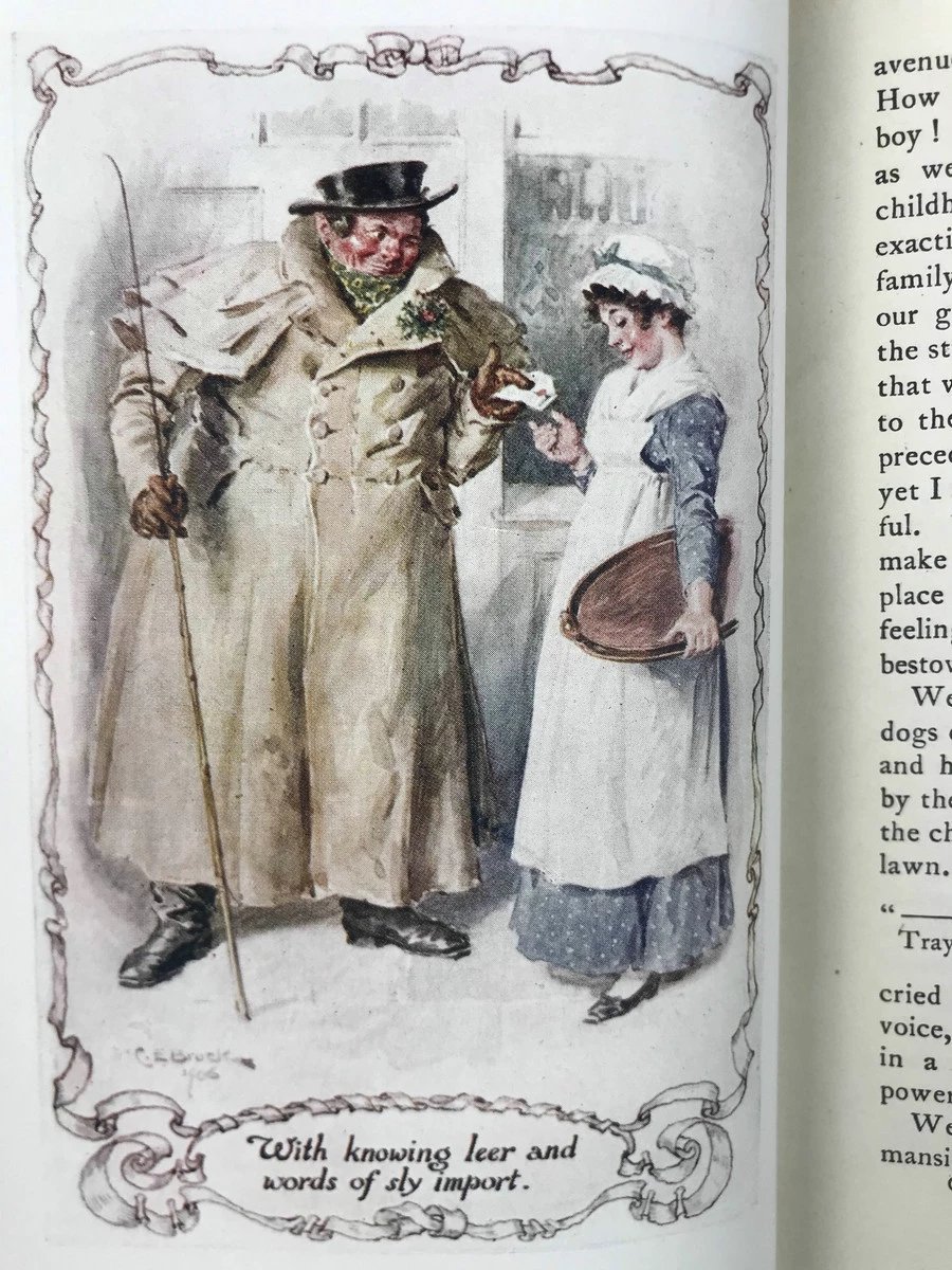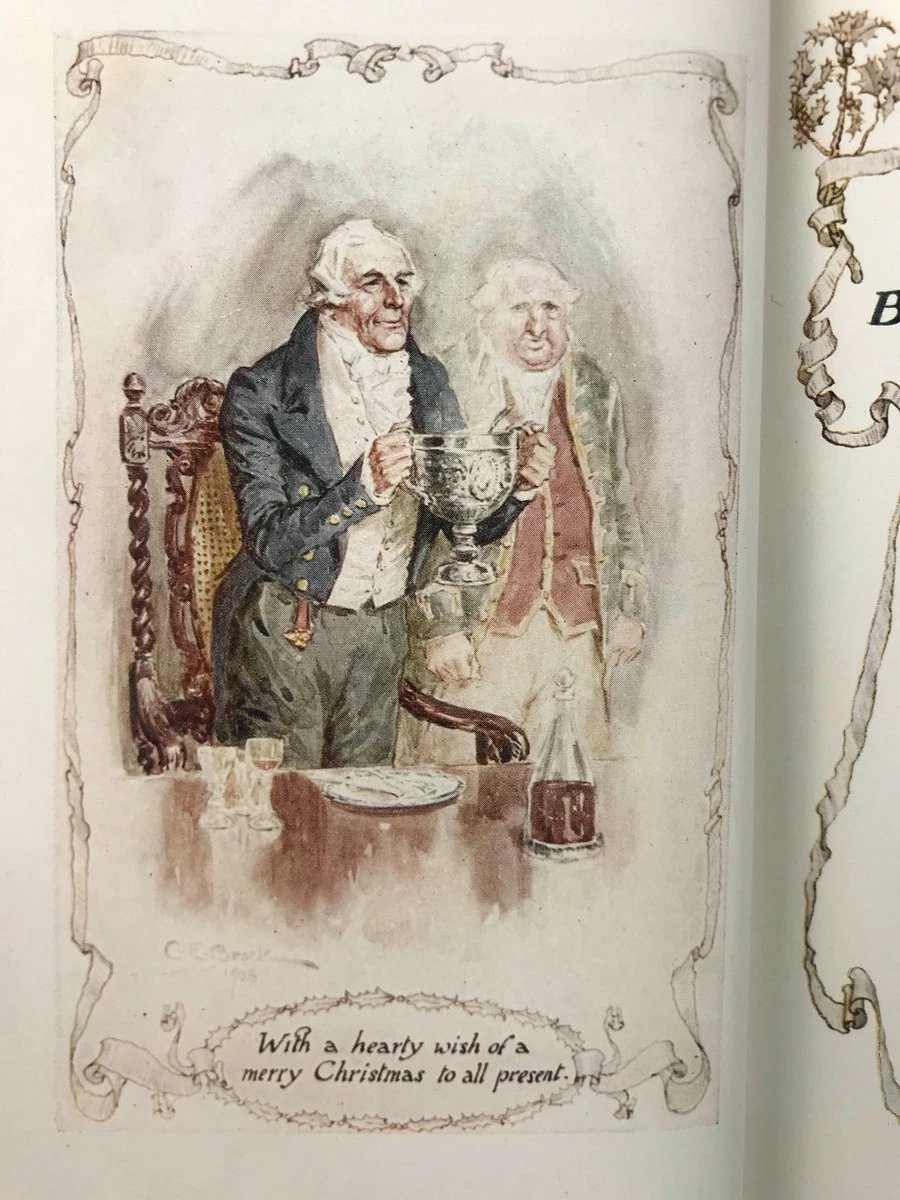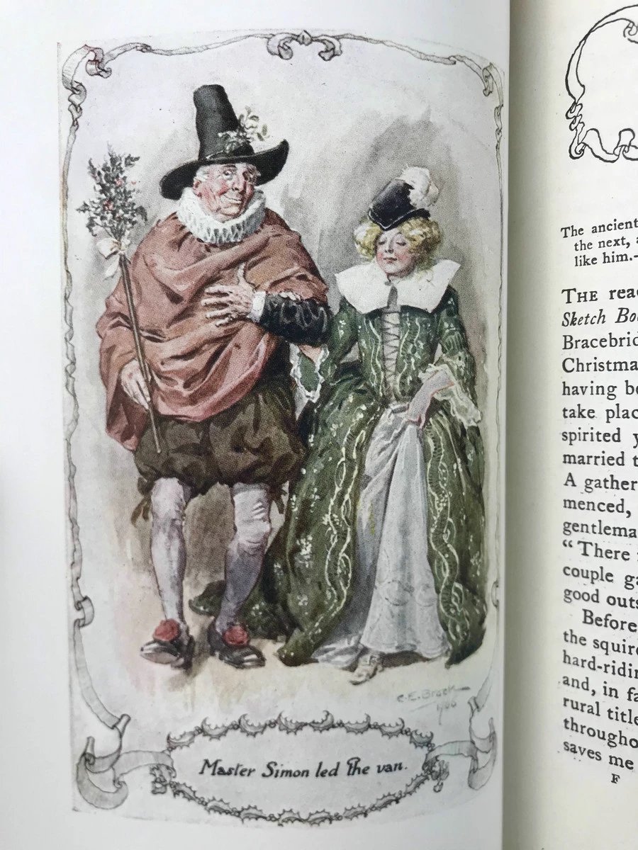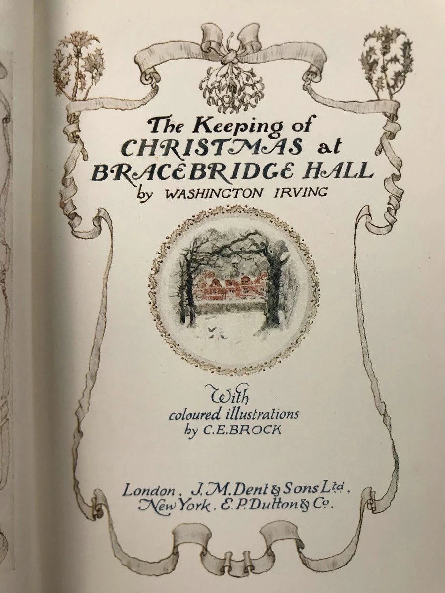 约20世纪早期 华盛顿·欧文《布雷斯布里奇山庄的圣诞节》 C.E.布洛克15幅彩色插图 漆布精装32开