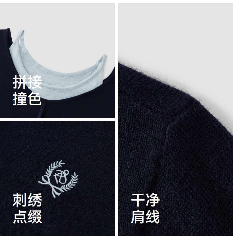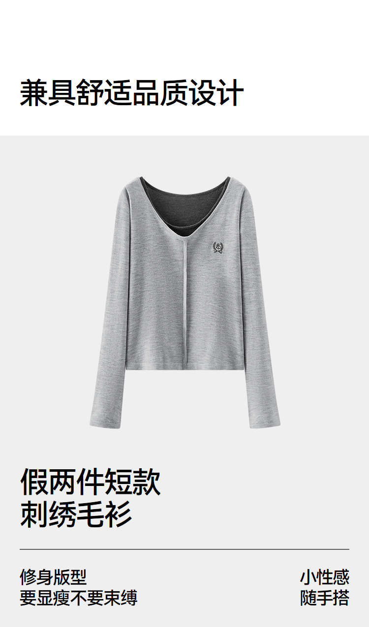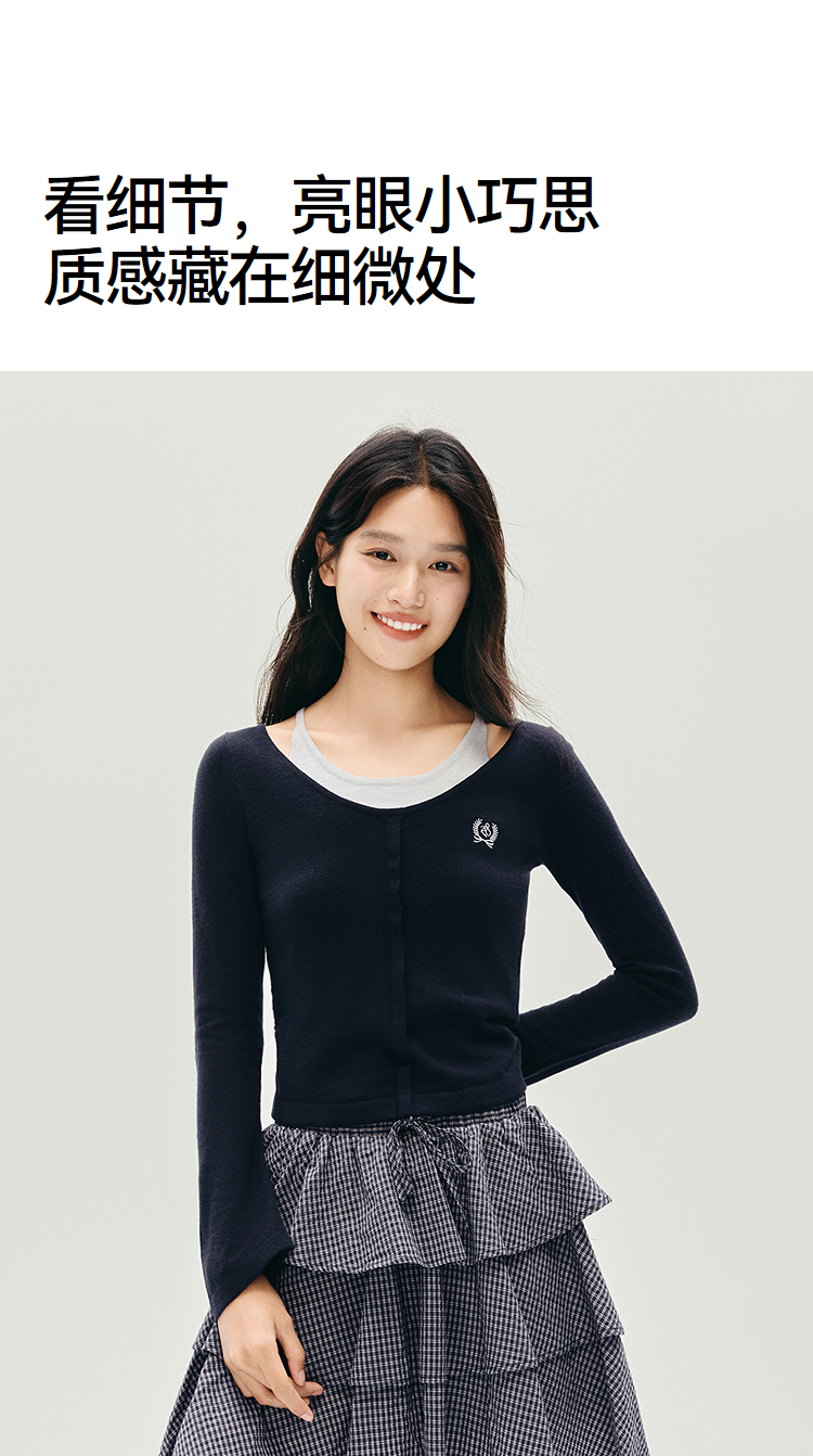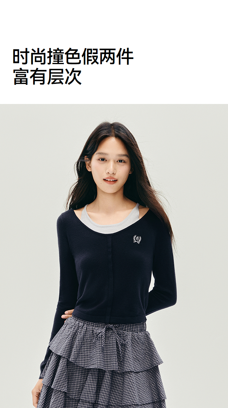 森马针织衫女冬短款假两件撞色刺绣修身2025新款小性感小心机上衣