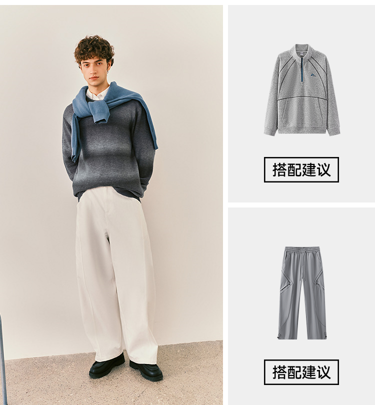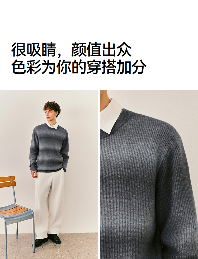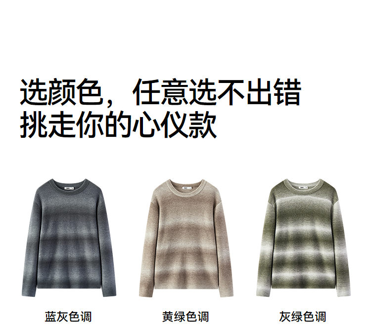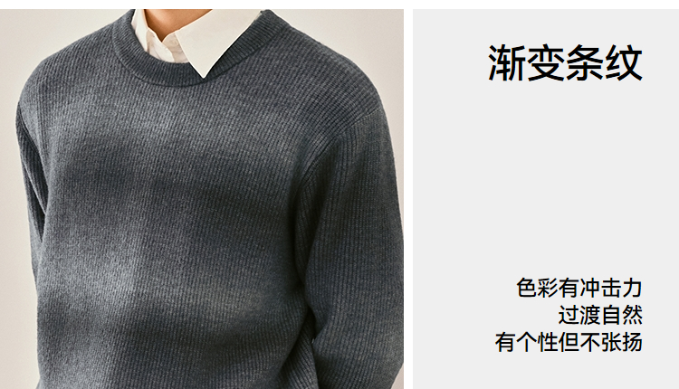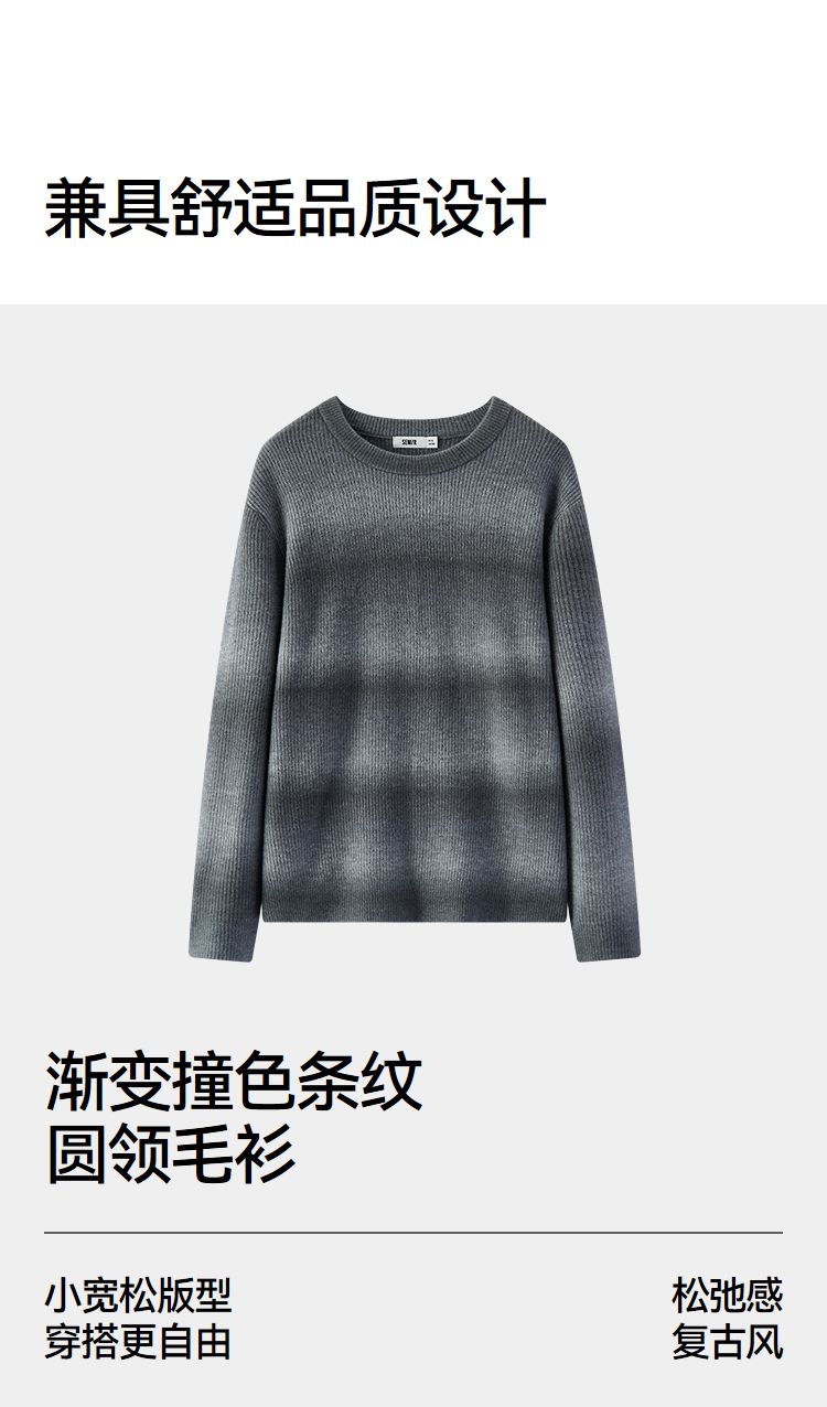 商场同款|森马毛衫男冬渐变条纹针织衫2025新款复古慵懒圆领毛衣