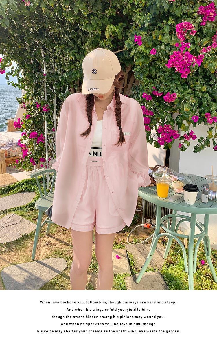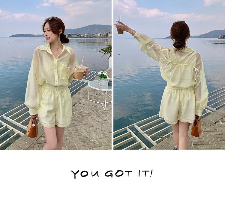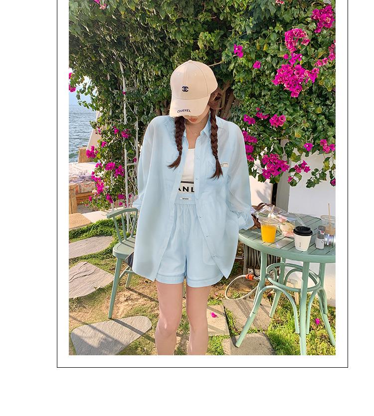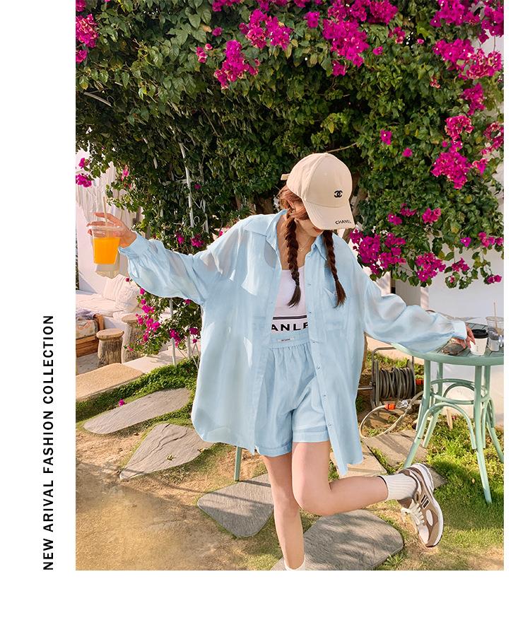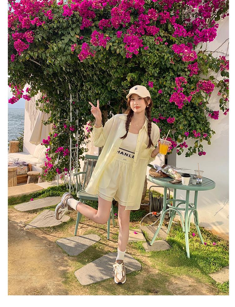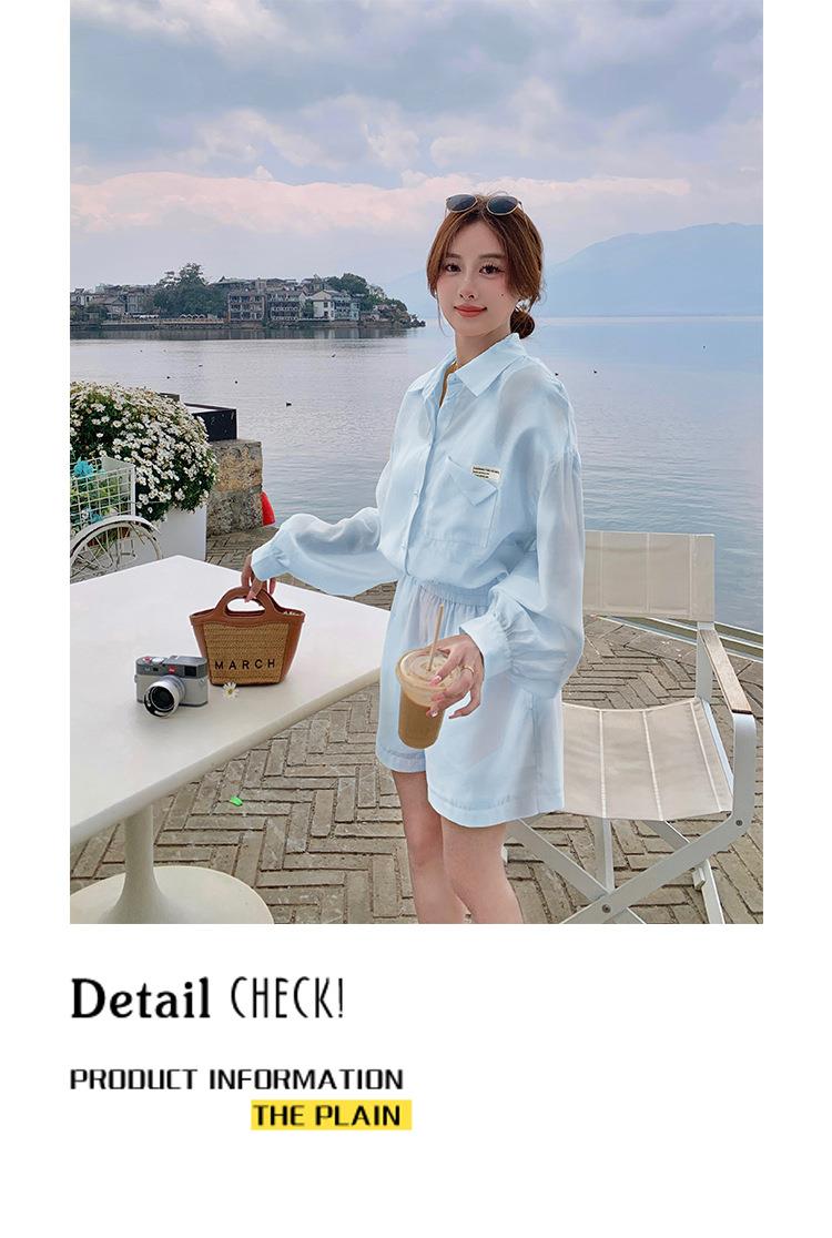 天丝防晒休闲套装女夏高级感时尚活泼减龄衬衫运动阔腿短裤两件套