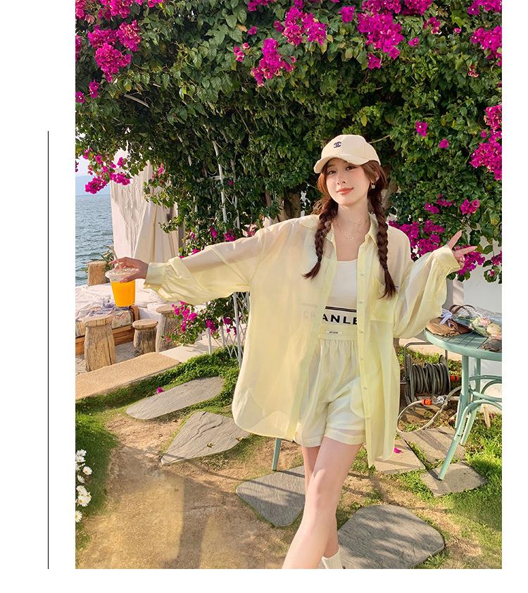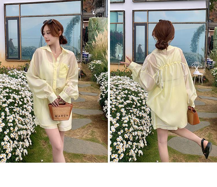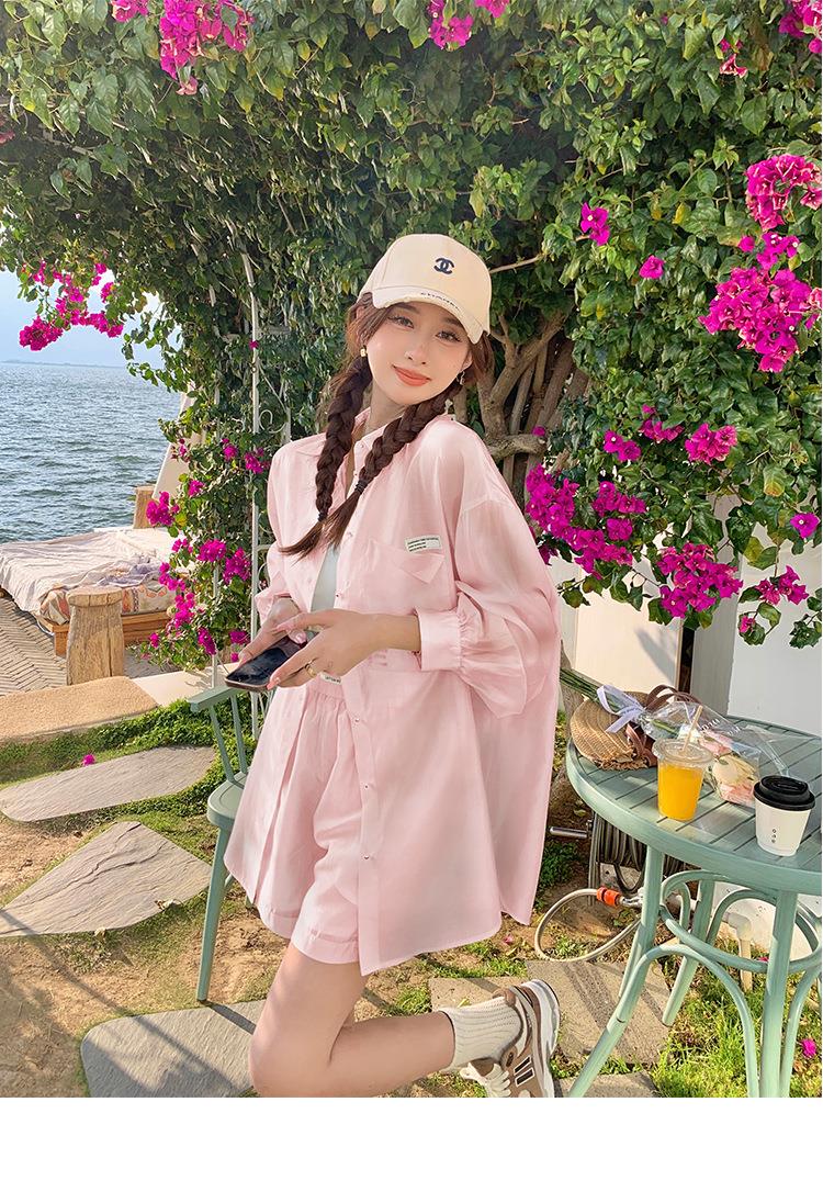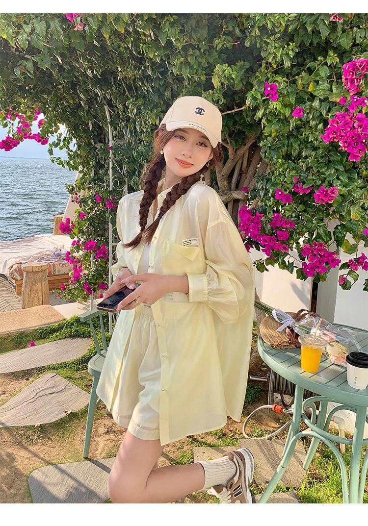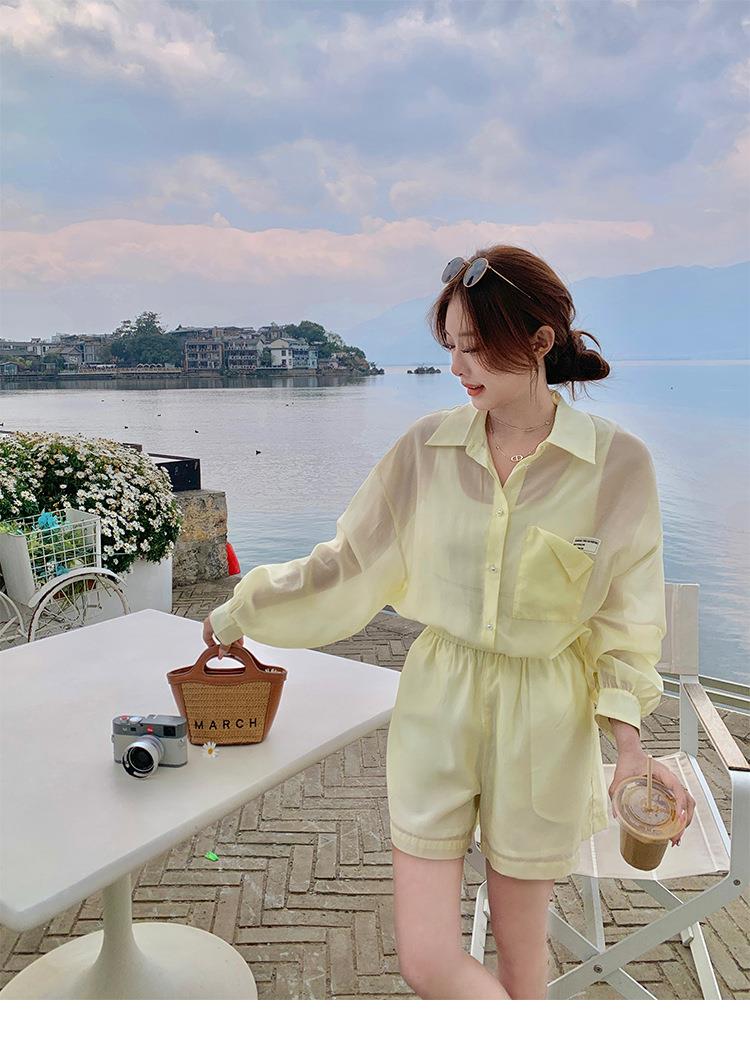 天丝防晒休闲套装女夏高级感时尚活泼减龄衬衫运动阔腿短裤两件套