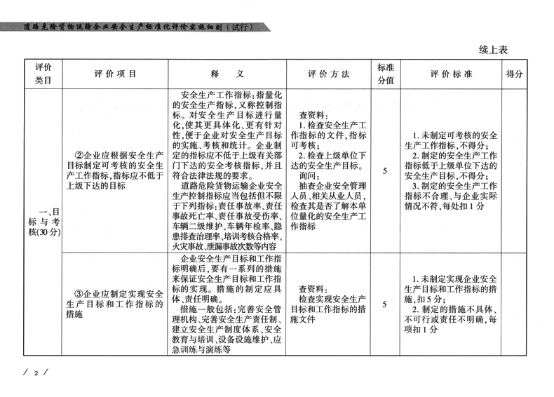 | 道路危险货物运输企业安全生产标准化评价实施细则(试行) | ||