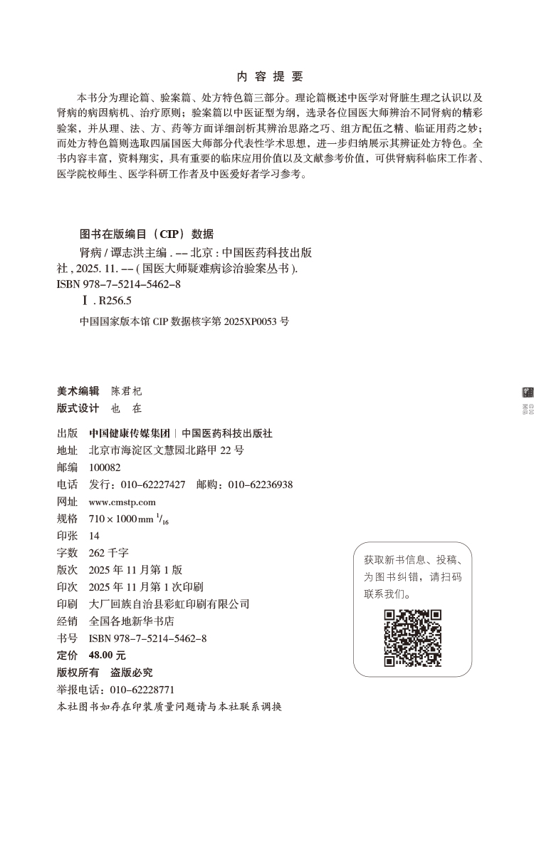 肾病(国医大师疑难病诊治验案丛书)谭志洪 可供肾病科临床工作者 医学科研工作者及中医爱好者学习参考 中国医药科技出版社