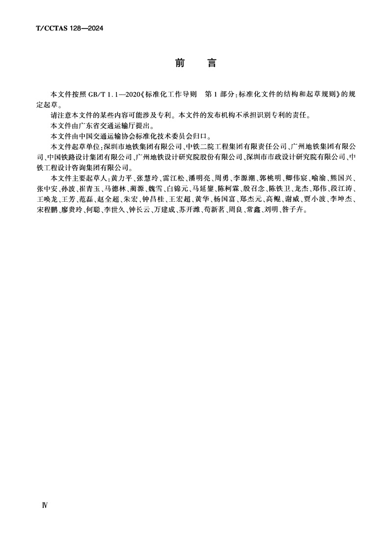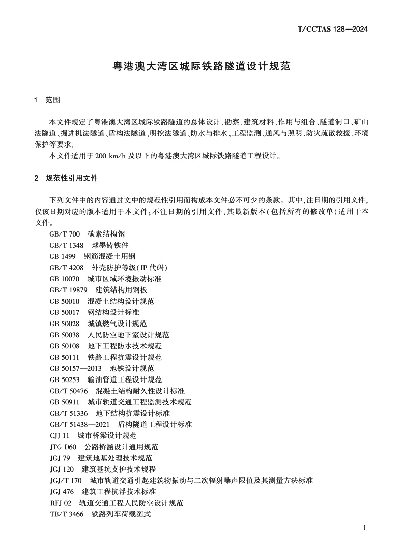书名:粤港澳大湾区城际铁路隧道设计规范T/CCTAS 128—2024