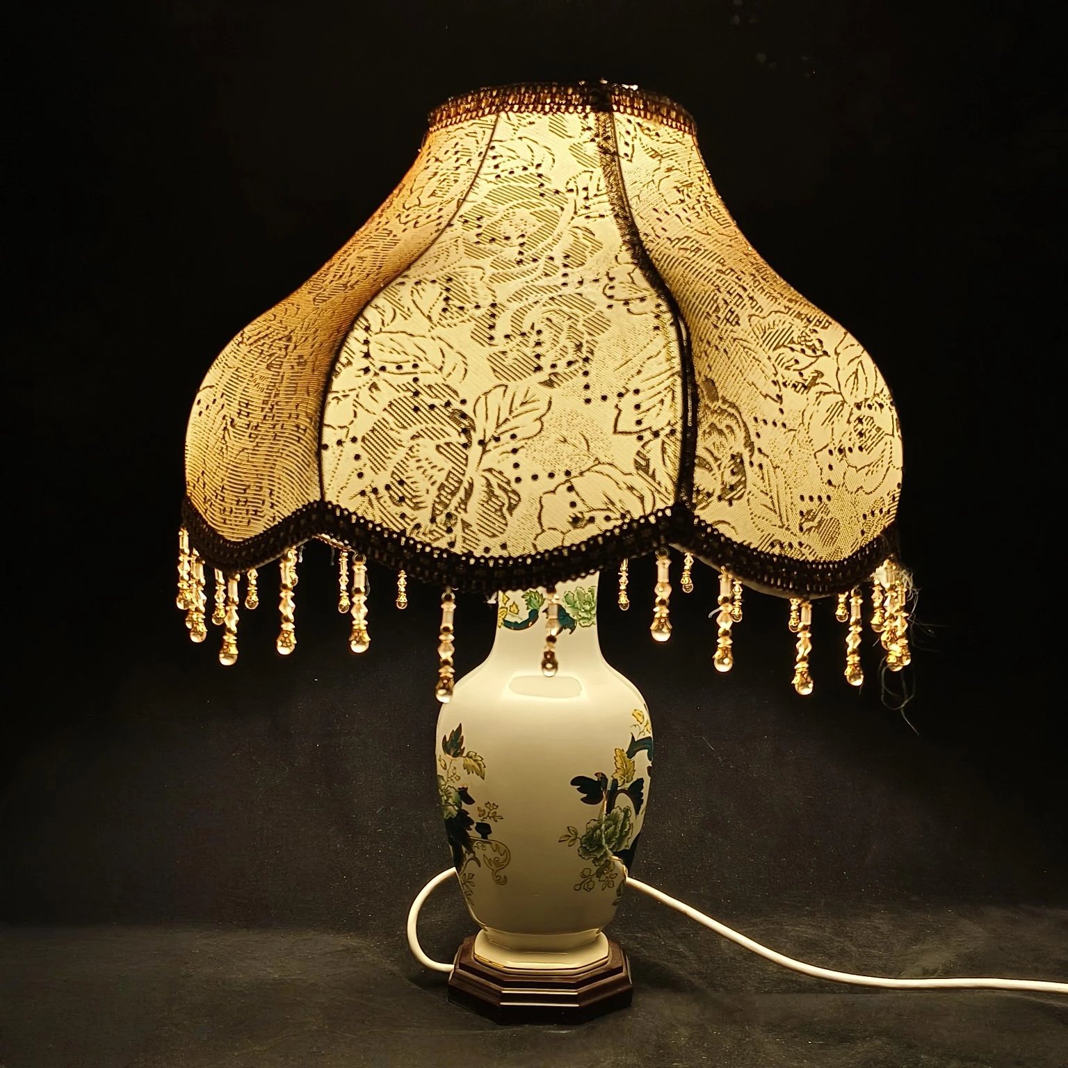 马森伊万里风格碧色查特勒斯&钴蓝色曼德勒系列手绘台灯,汉洋折衷风格的设计贵气十足,灯光下描金牡丹更显国色天香。
