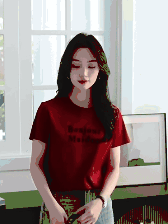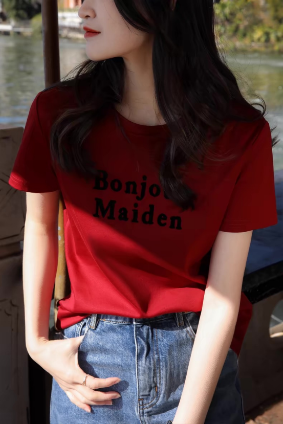 提亮肤色显肤白的一把好手👍 黄黑皮姐妹也可以大胆入! 是那种人群中一眼被看到的红! 和胸前黑色植绒印花的碰撞,显得更加高级! 像这种采用高阶立体感植绒印花的不多见 撞色和谐自然,吸睛亮眼,不易掉落!