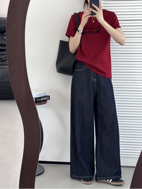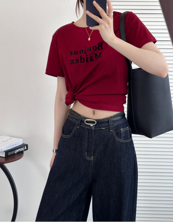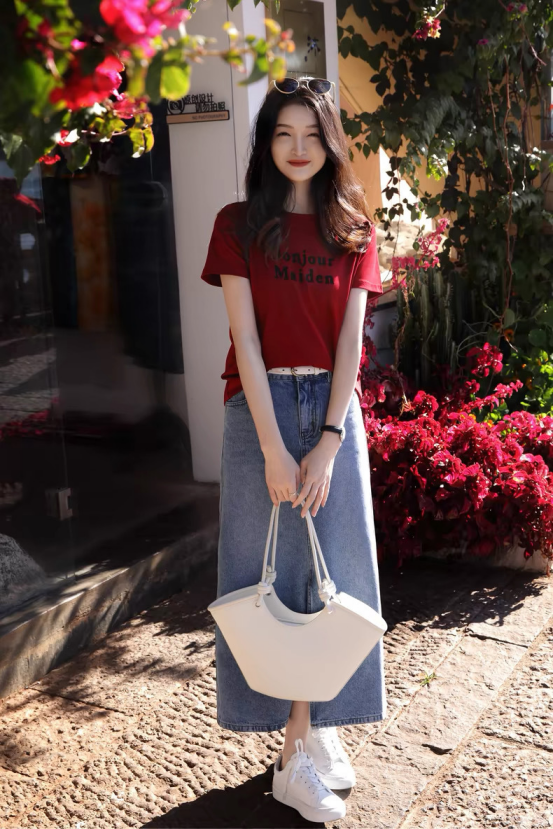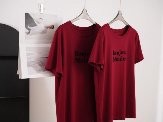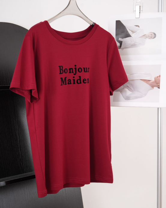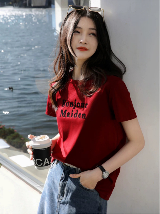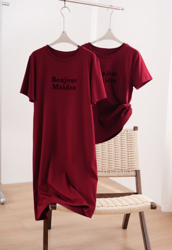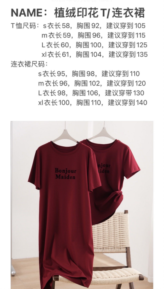 ✨ 连衣裙 也是波尔多红撞黑色字母,简单的高级感! 如果懒人穿搭有公式。t裙一定是最优解! 轻松又简单,是早八人快速出门的最佳选择~ 微宽松版型,看似直上直下,其实做了微微的收腰效果 以此达到遮肉藏拙,又不失利落的显瘦感 圆领领型基础百搭,领口双走线➕后包边巩固! 随意穿脱也不易变形~耐穿又耐看!